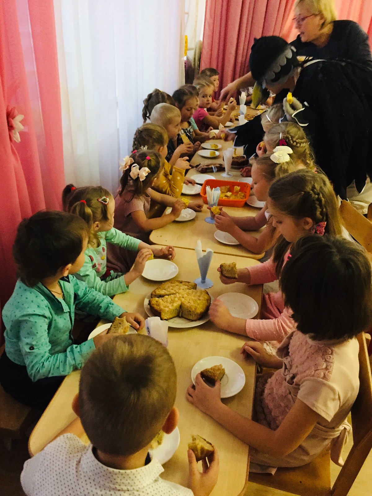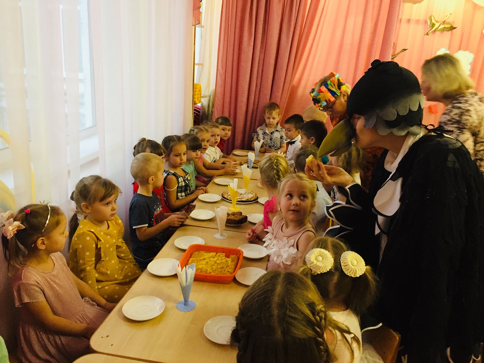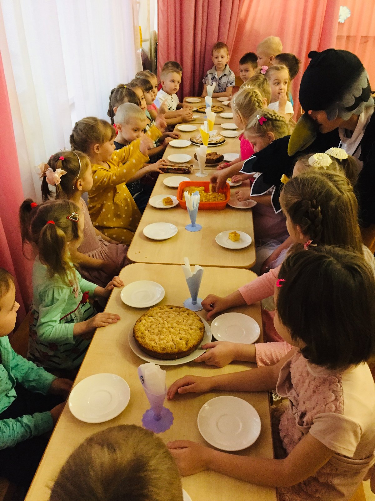 Детям предлагались игры с яблоками. В конце праздника дети пили чай с домашней выпечкой, которую принесли из дома.