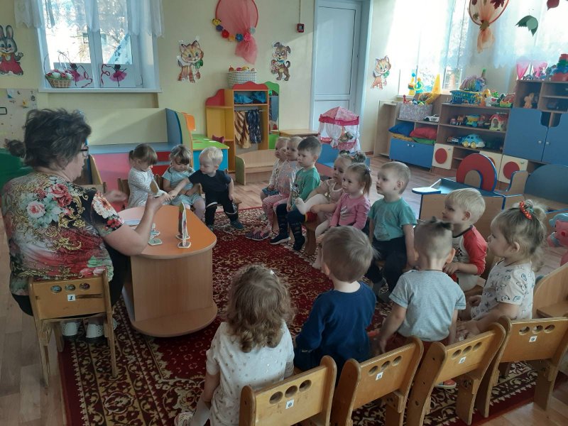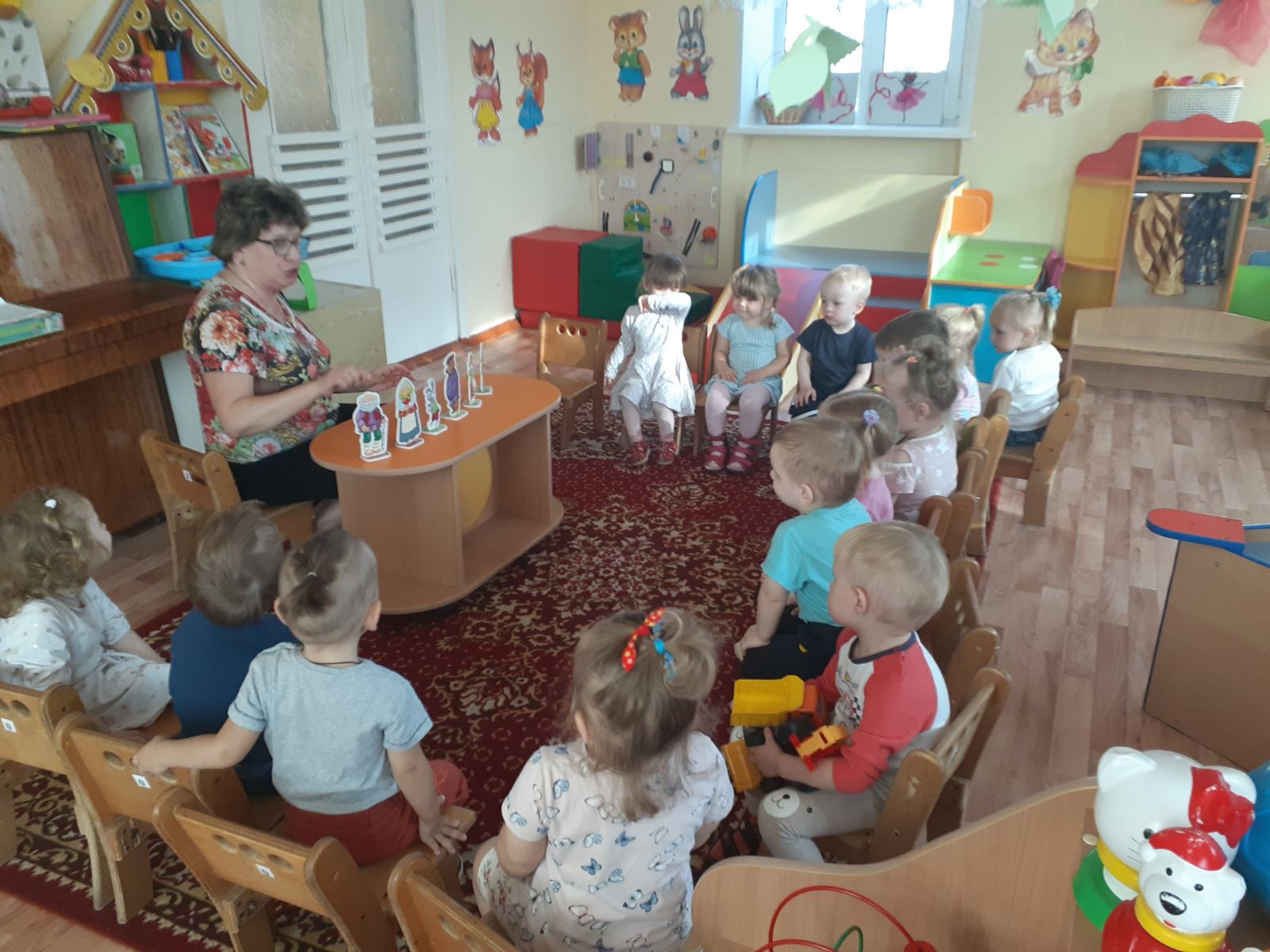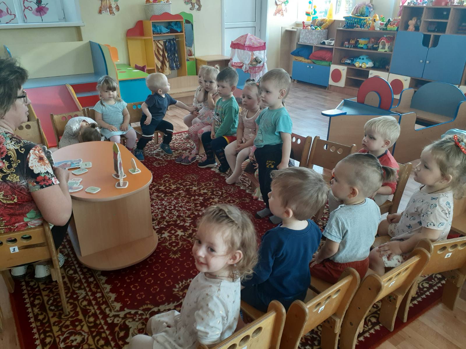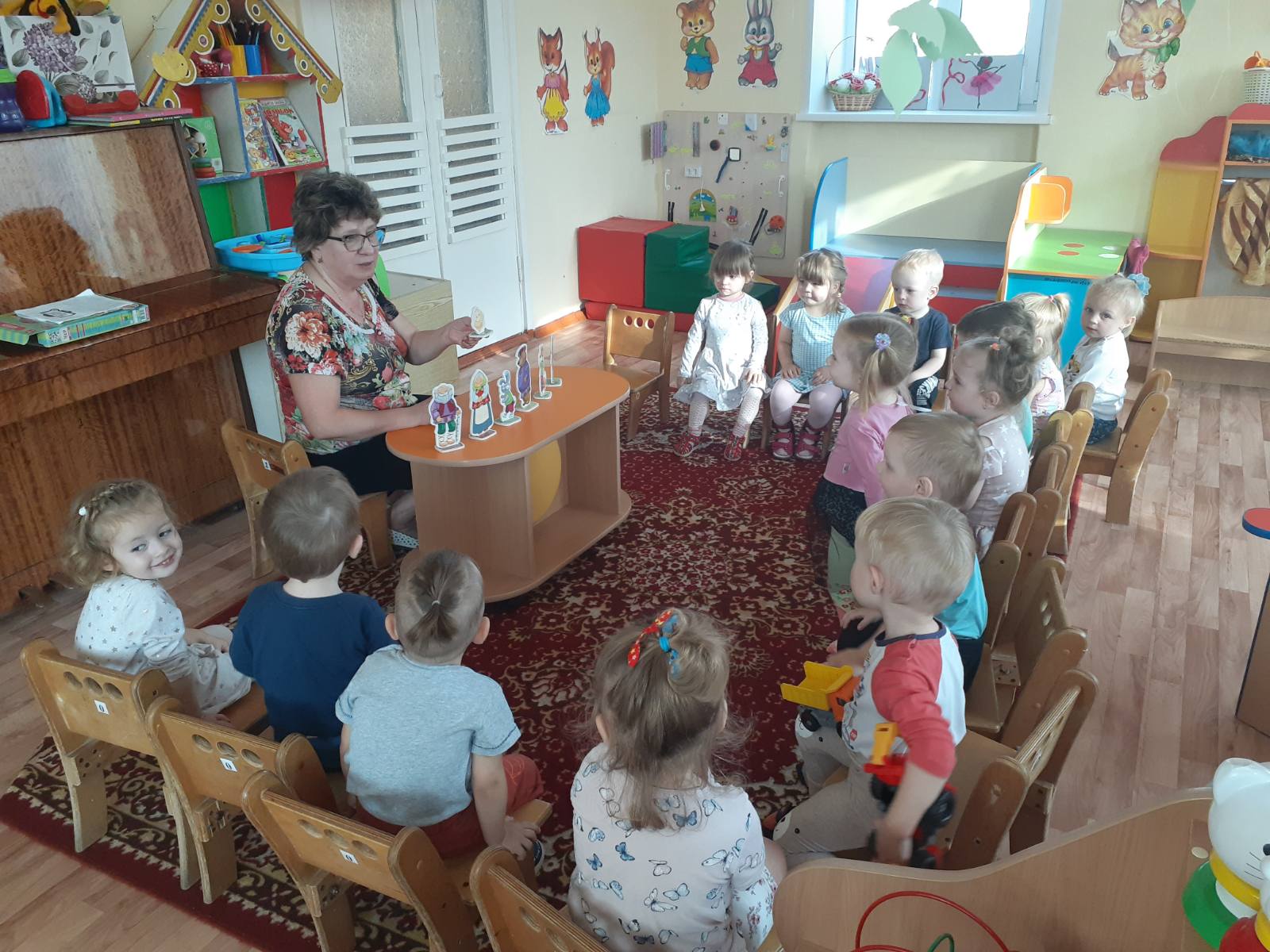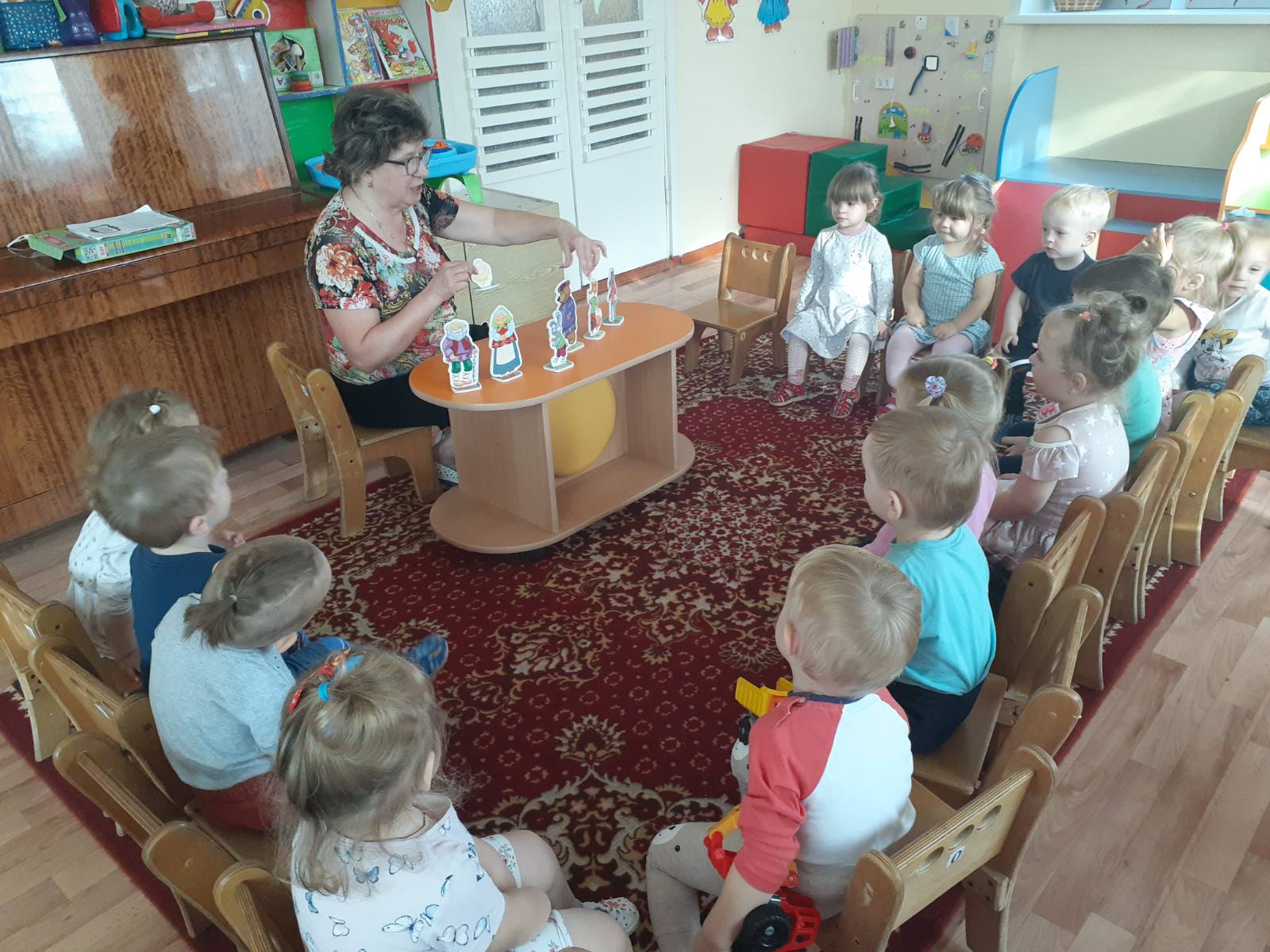 Воспитатель 1 младшей группы "Грибок" Корнева Валентина Николаевна знакомит своих малышей со сказкой.