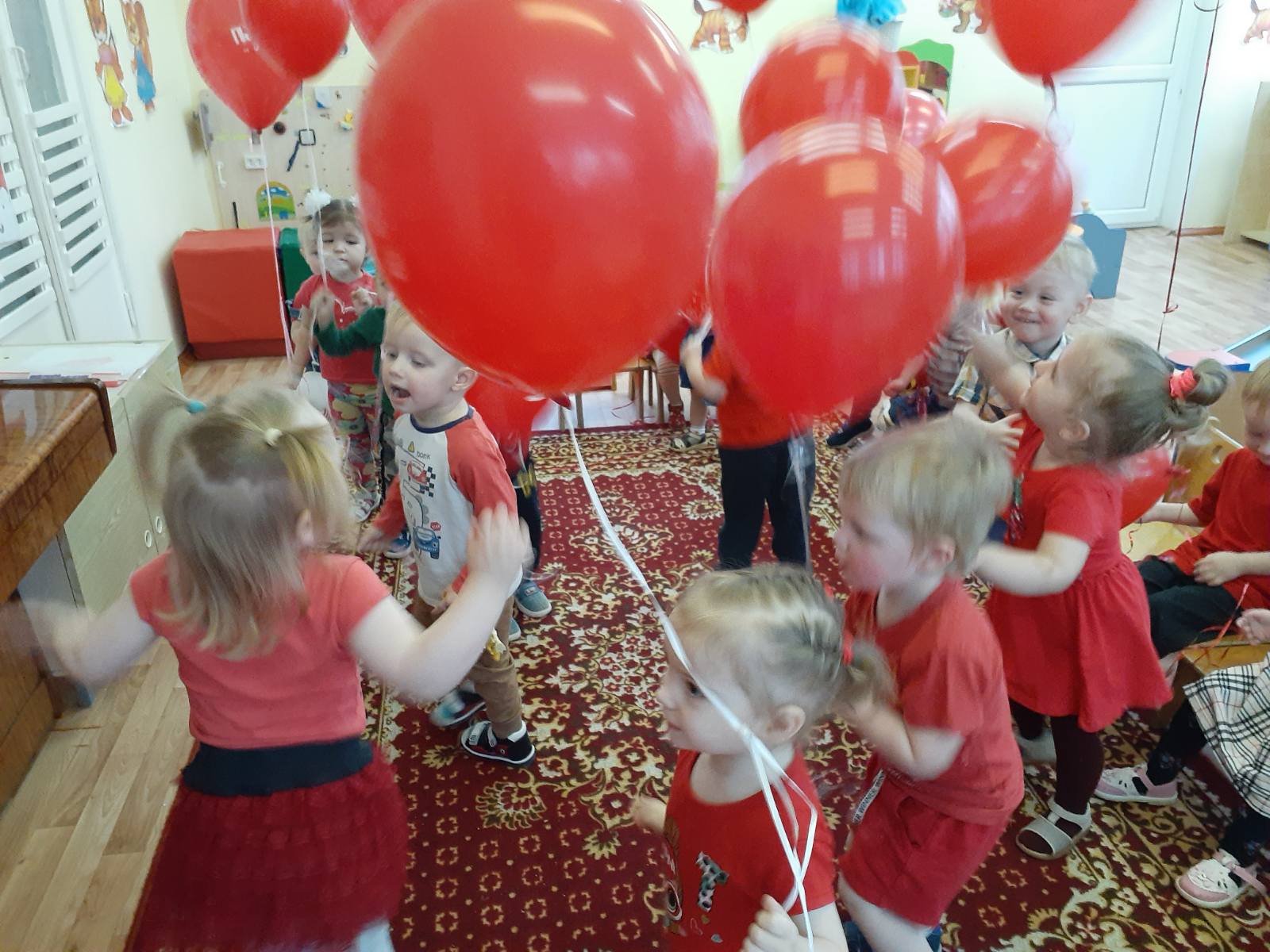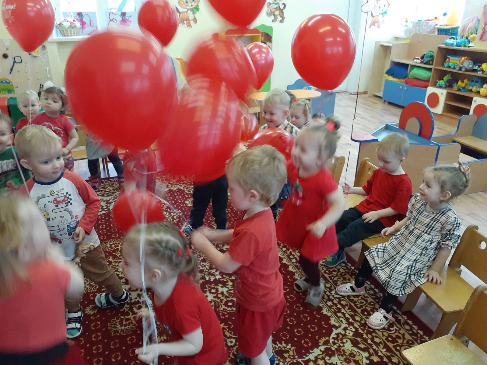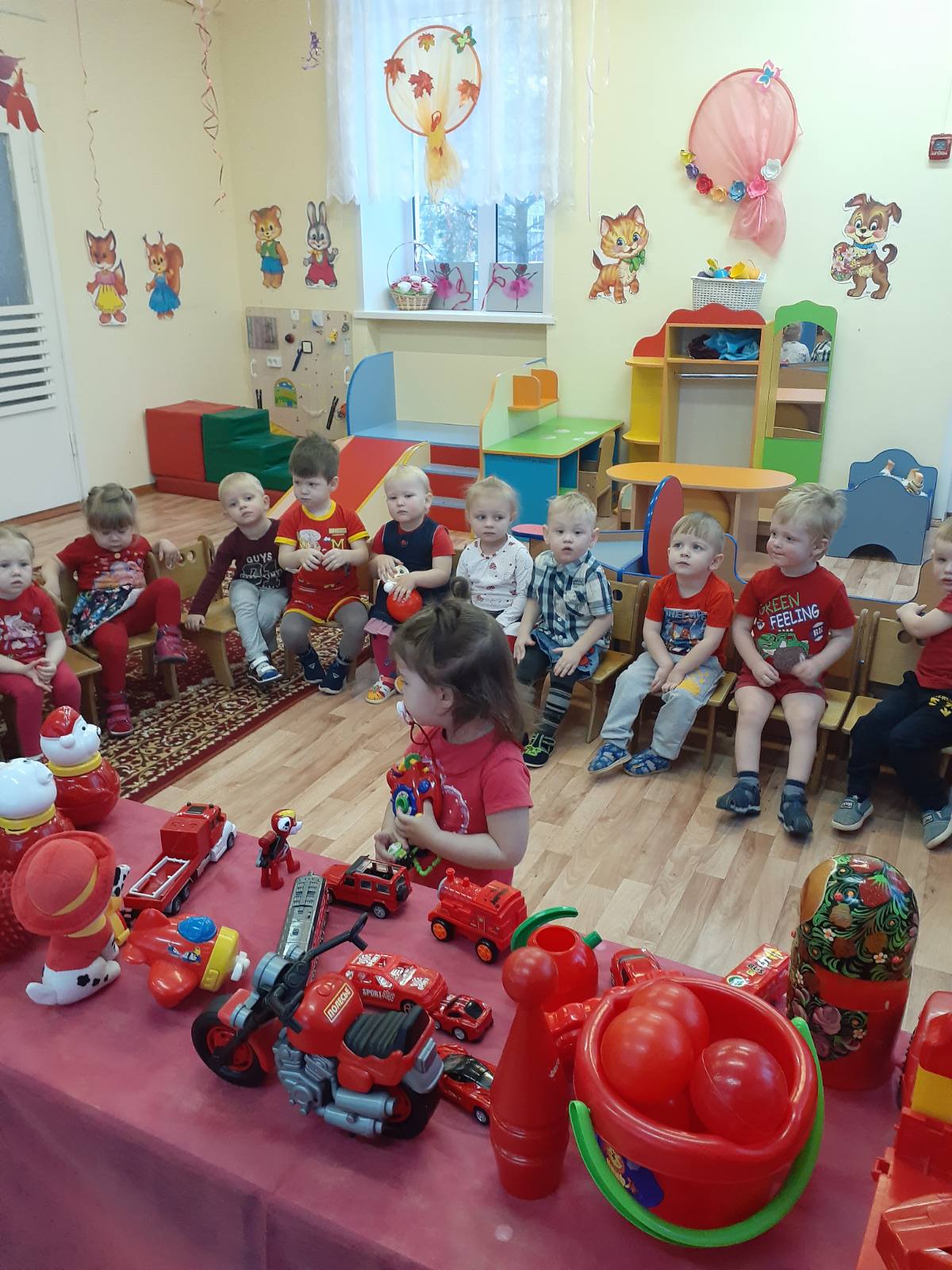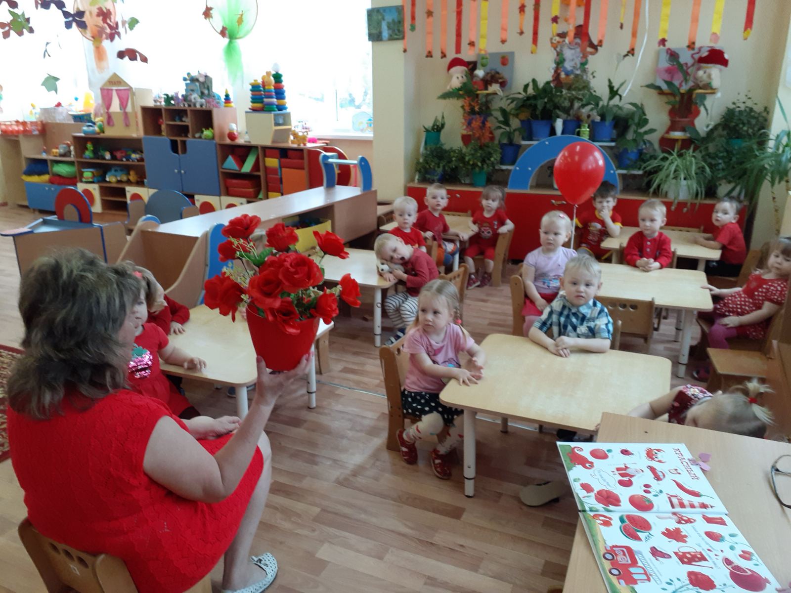 с 23 по 27 ноября у самых маленьких воспитанников нашего дошкольного учреждения проходит тематическая неделя "В гостях у красного цвета". Малыши знакомились с красный цветом, играли в магазин игрушек, в гости к ребятам прилетали снегири, играли в игру "Зайчик", слушали музыку и танцевали с воздушными красными шариками.
