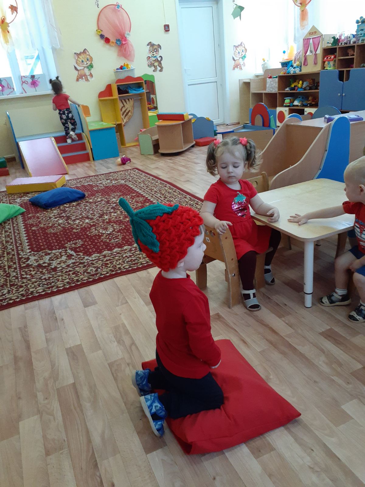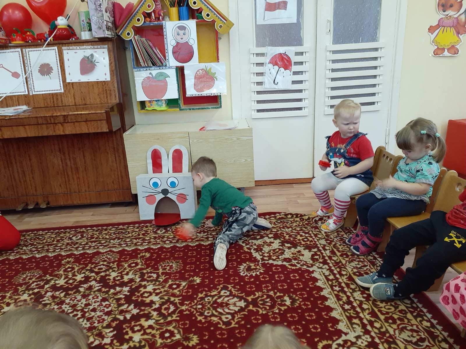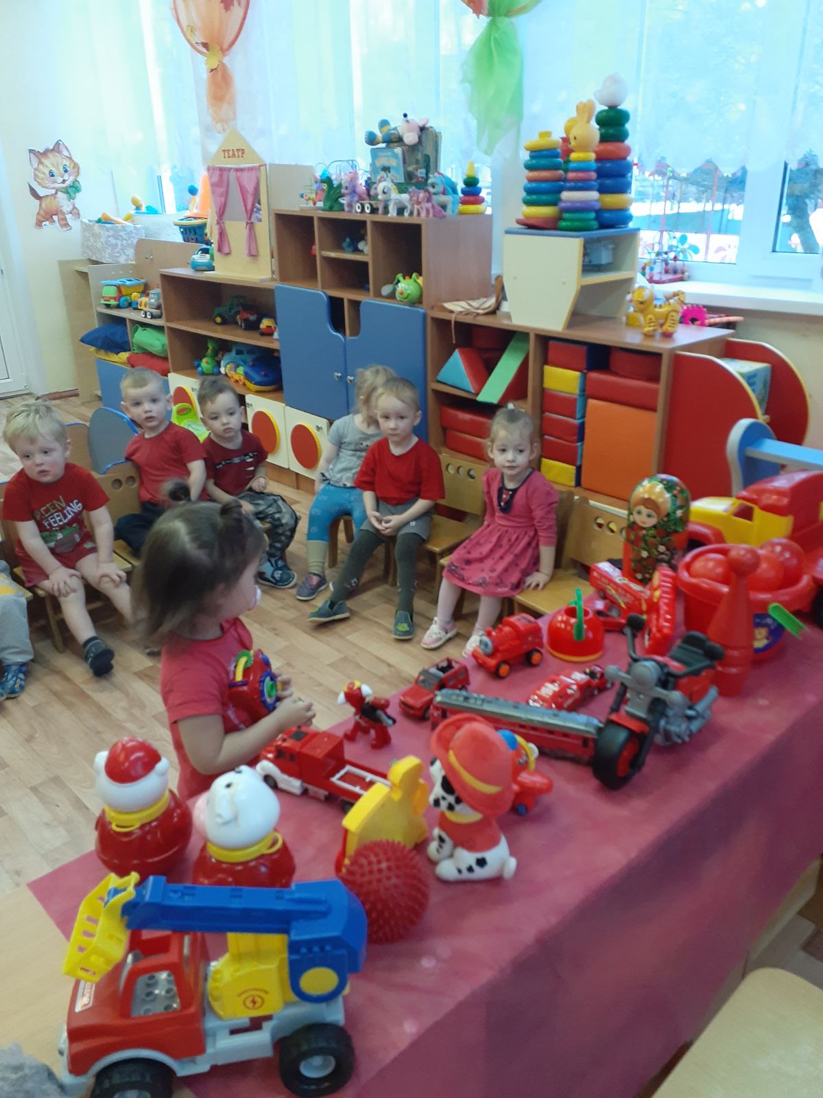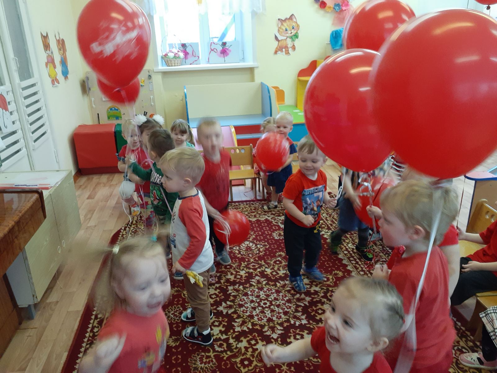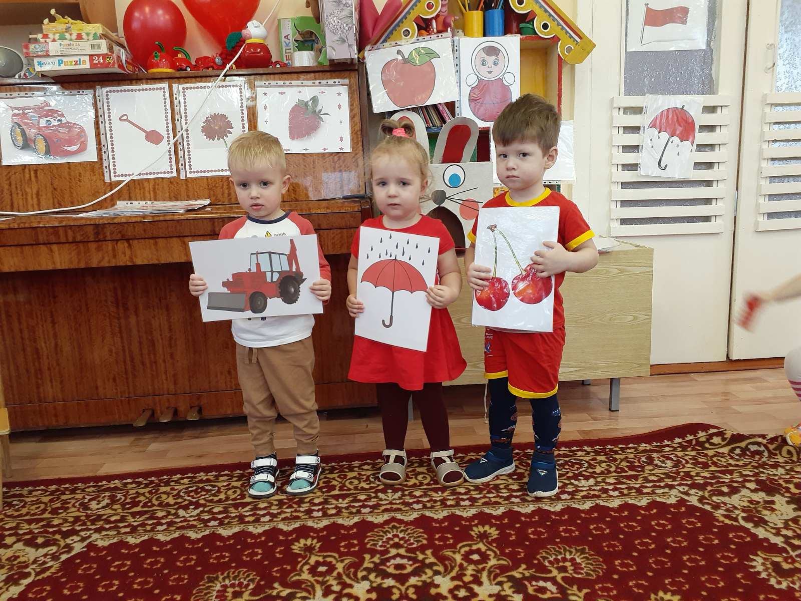 с 23 по 27 ноября у самых маленьких воспитанников нашего дошкольного учреждения проходит тематическая неделя "В гостях у красного цвета". Малыши знакомились с красный цветом, играли в магазин игрушек, в гости к ребятам прилетали снегири, играли в игру "Зайчик", слушали музыку и танцевали с воздушными красными шариками.