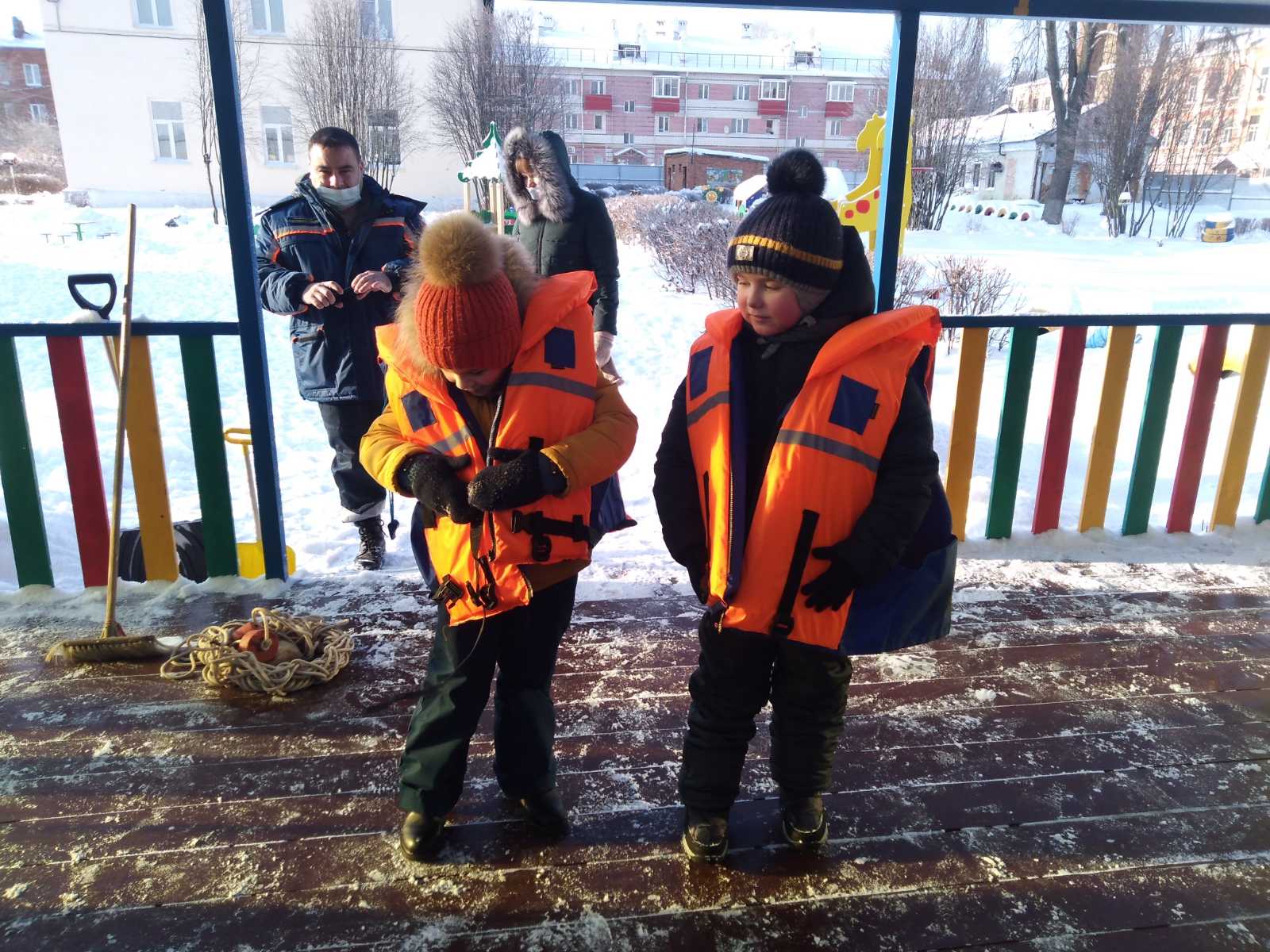 15 января 2021 года к ребятам подготовительных групп пришли сотрудники СПСЧФПС ГПС ГУ МЧС России по Владимирской области. Провели беседу по «Правилам безопасного пребывания на льду в зимний период» и в игровой форме показали как помочь если провалился под лед.