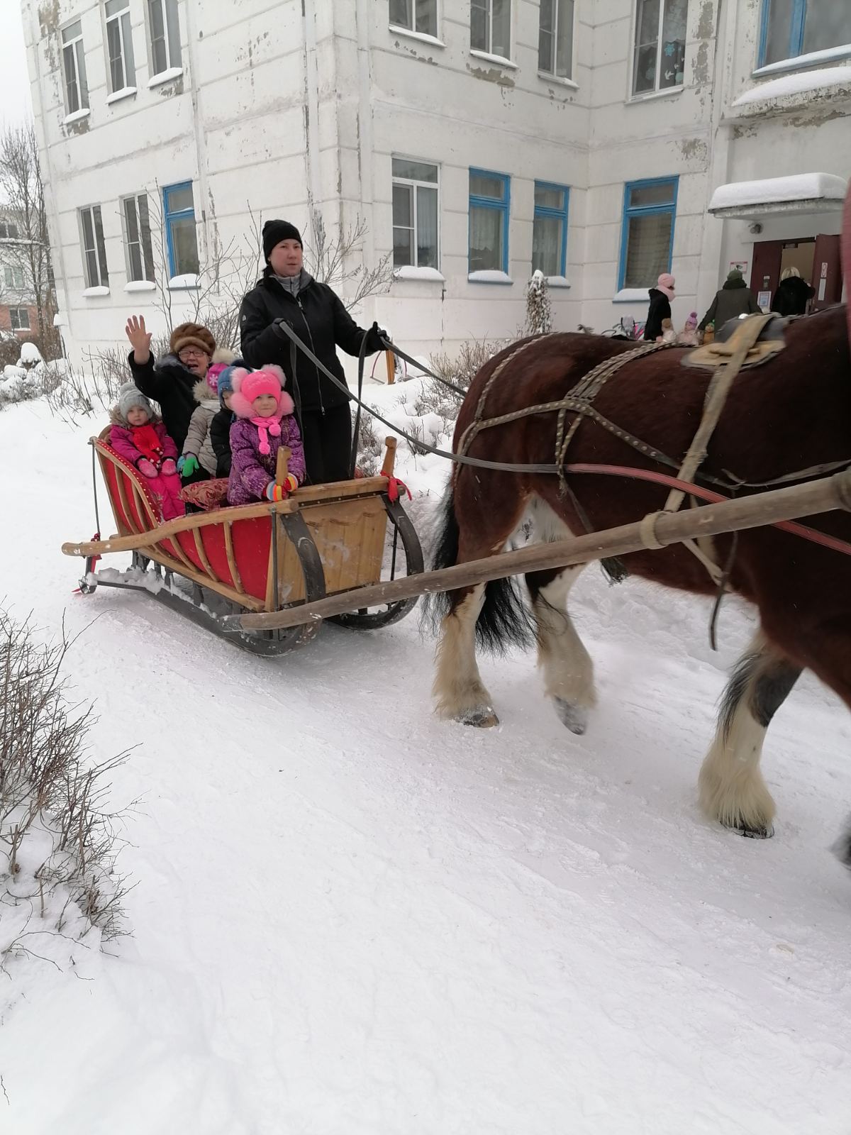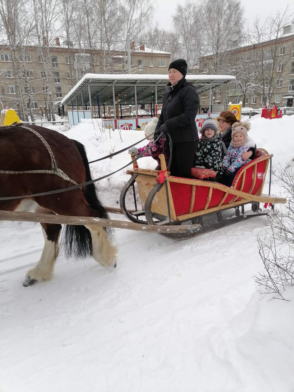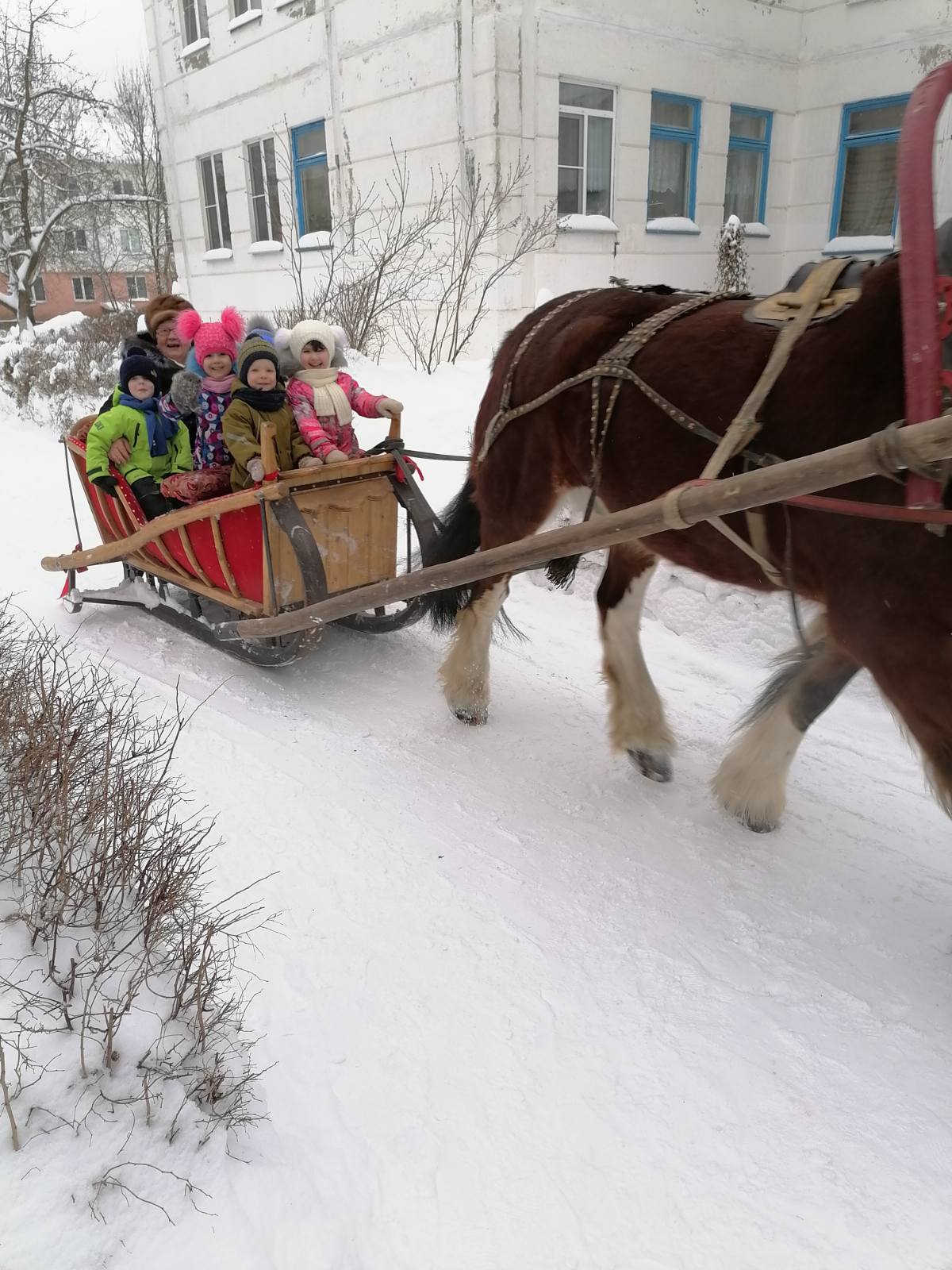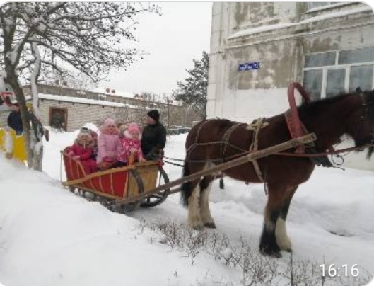 20 января 2021 года к нашим ребятам прискакала лошадка с санями, которая возила детей по территории детского сада.