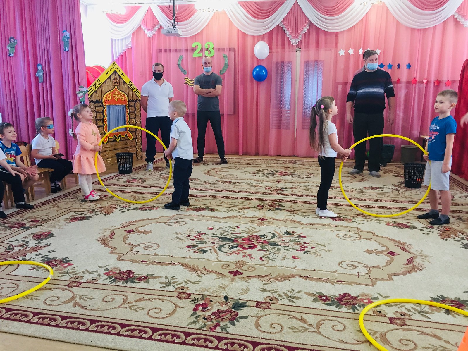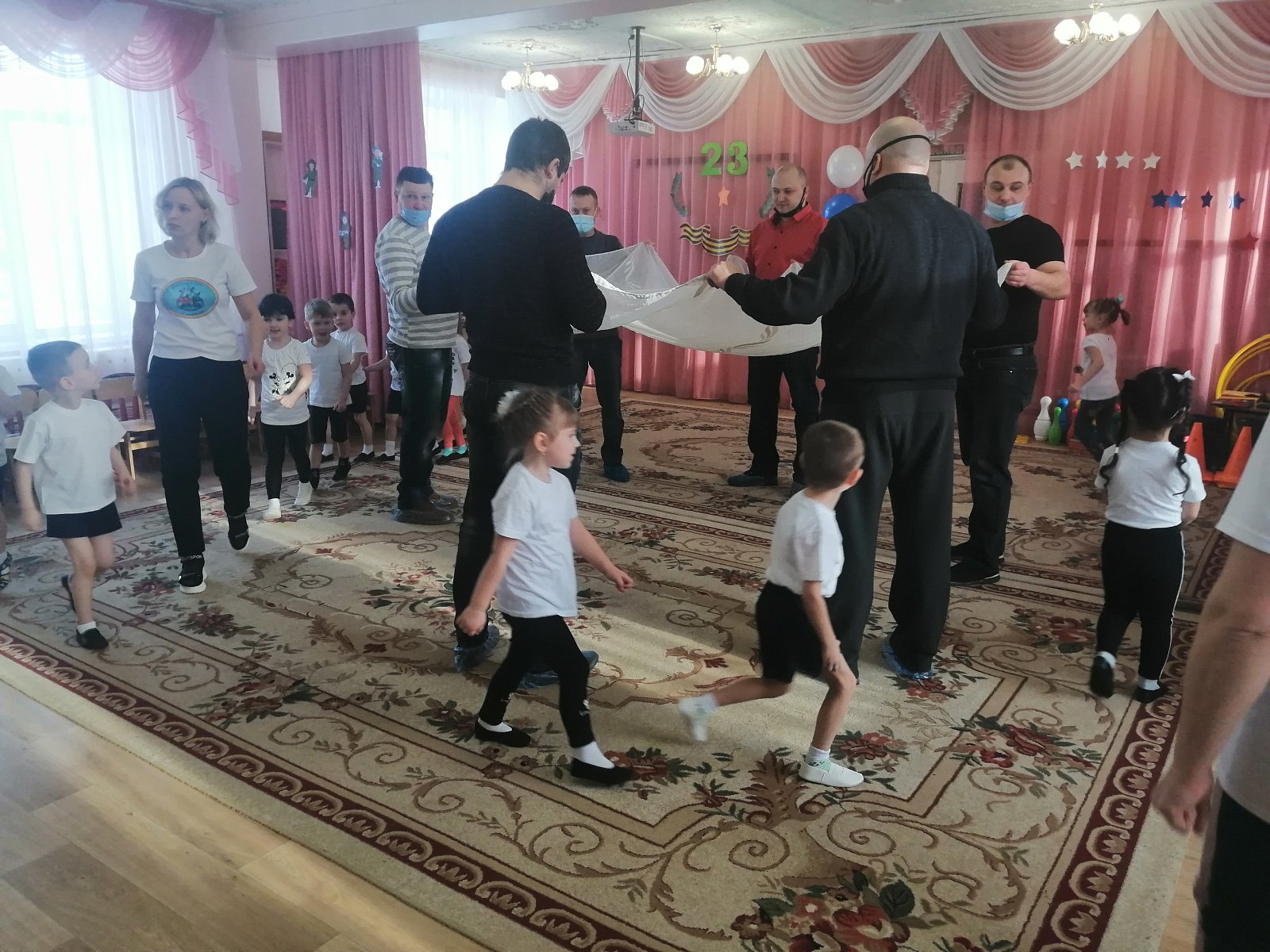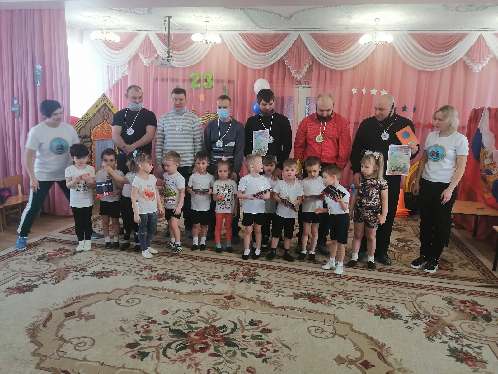 Каждый год в конце зимы, 23 февраля, все мы отмечаем праздник — день защитника Отечества. Это праздник настоящих мужчин — смелых и отважных, ловких и надёжных, а также праздник мальчиков, которые вырастут и станут защитниками Отечества. Педагоги организовали цикл мероприятий: провели с детьми беседы, тематические занятия, читали рассказы об армии, оформили выставки, стенгазеты ко Дню защитника Отечества. Воспитанники подробно узнали о том, кто такие защитники Отечества, о разных родах войск, о военных профессиях и продемонстрировали практические навыки на спортивно – музыкальном празднике, который прошел в детском саду. И, конечно же, не обошлось без участия любимых пап и дедушек — наших защитников! И взрослые, и дети получили эмоциональный заряд, а мальчишки — желание служить в рядах российской армии! Ребята приготовили подарки для своих пап и дедушек и торжественно вручили их на утреннике.