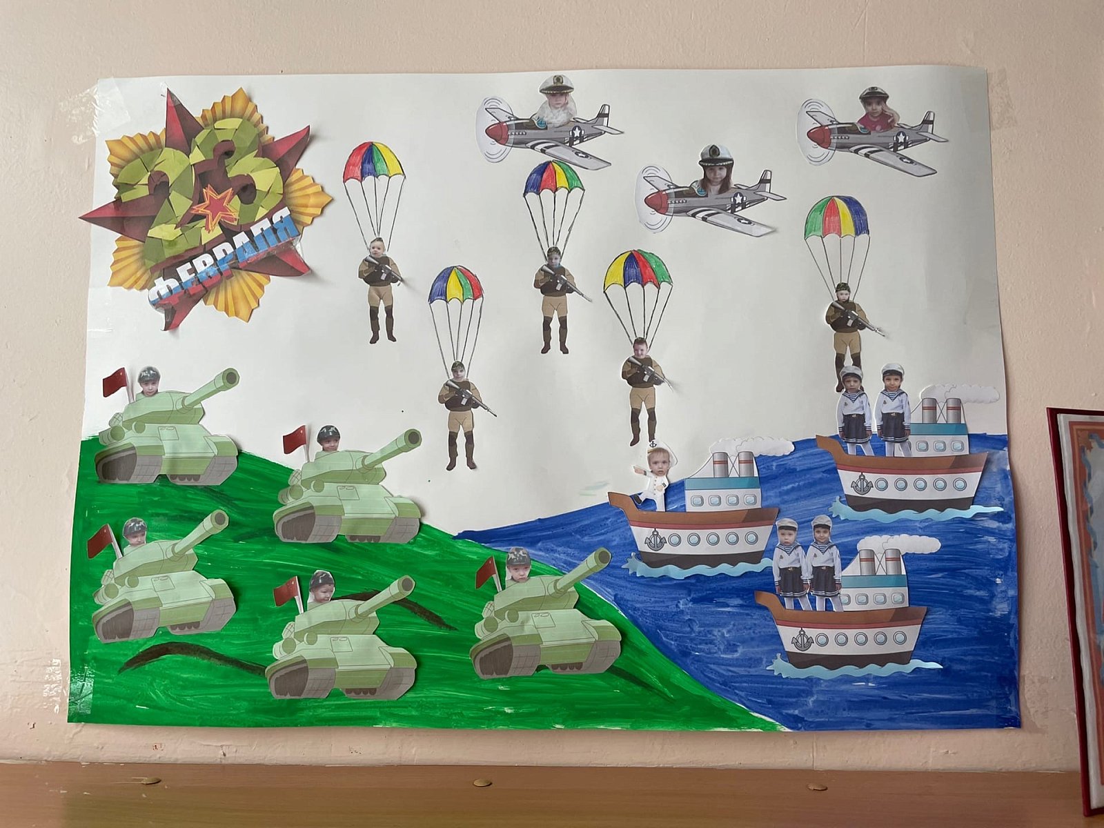 В преддверии этого праздника, в нашем детском саду была организованна тематическая выставка работ, посвященная «Дню Защитника Отечества».