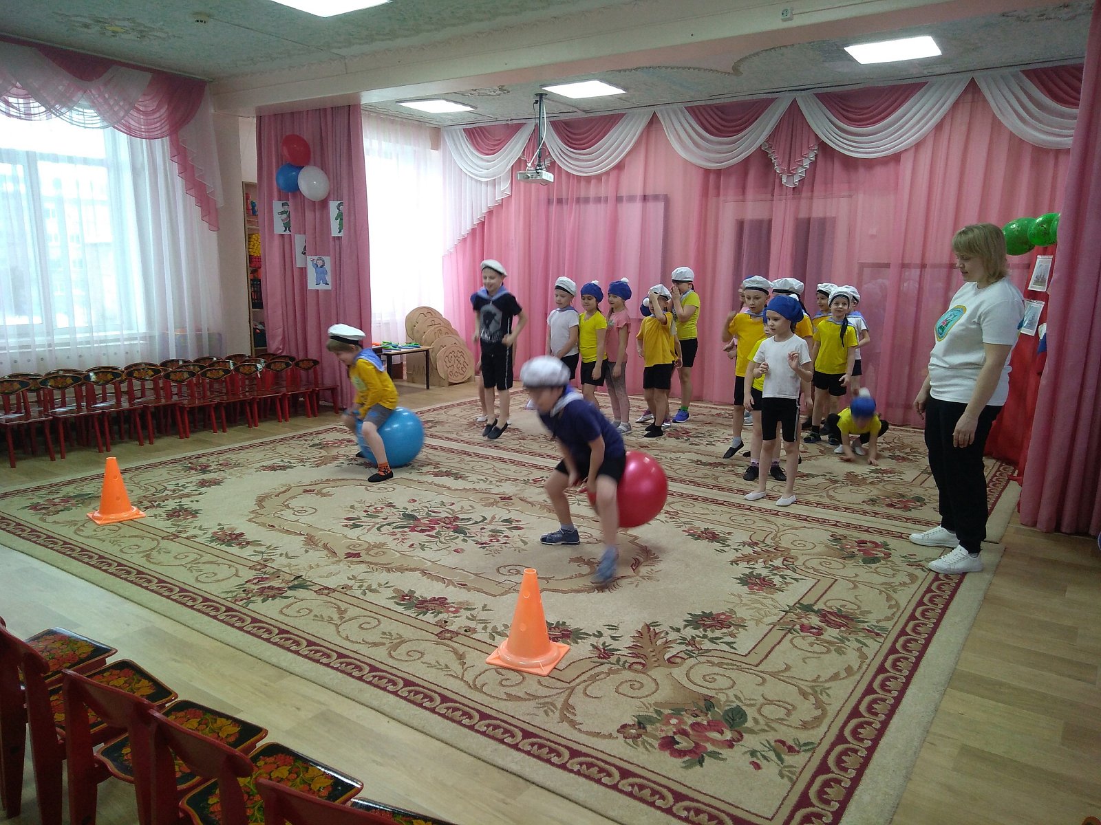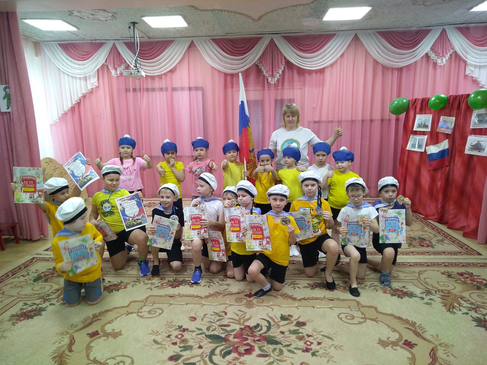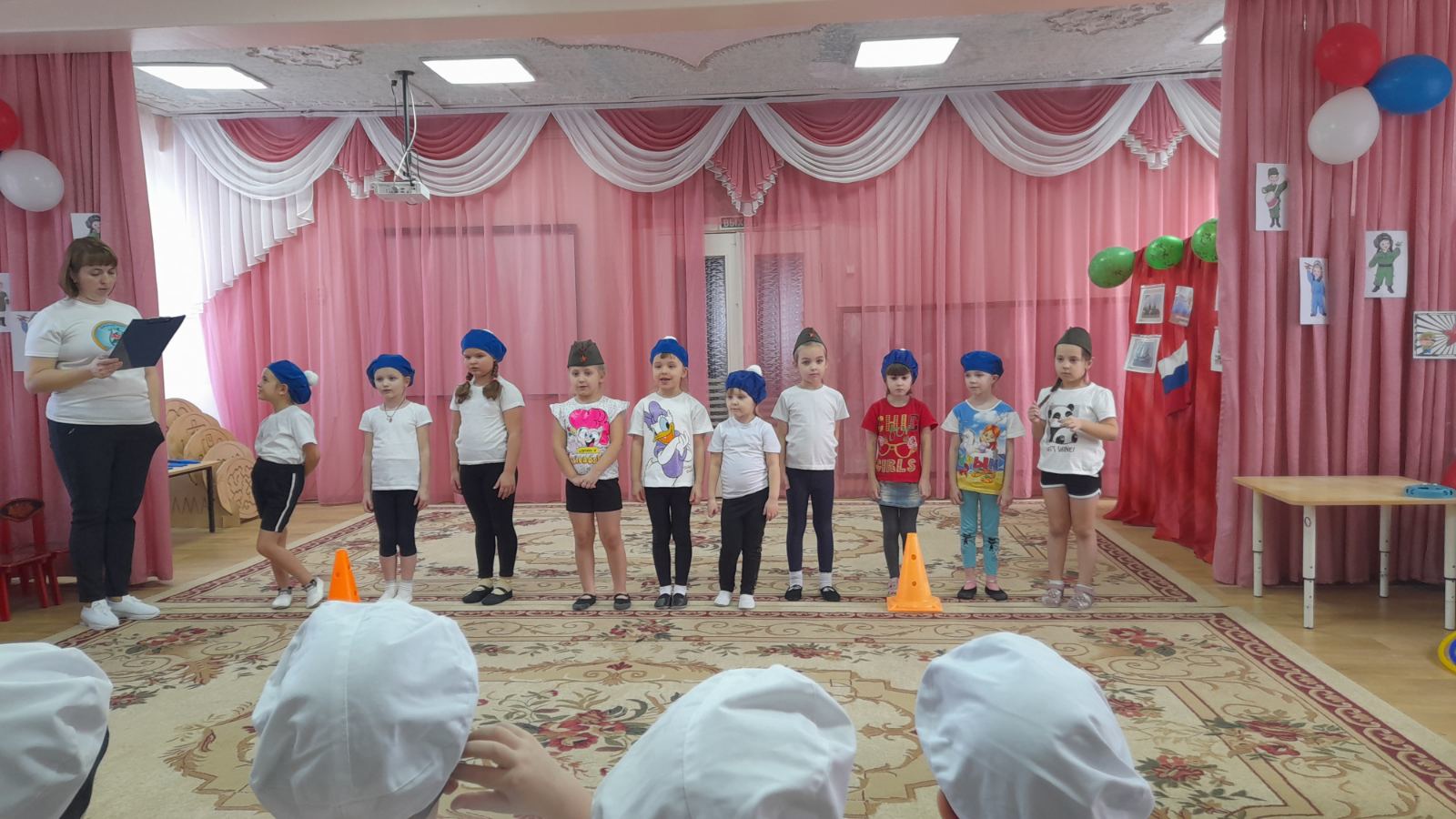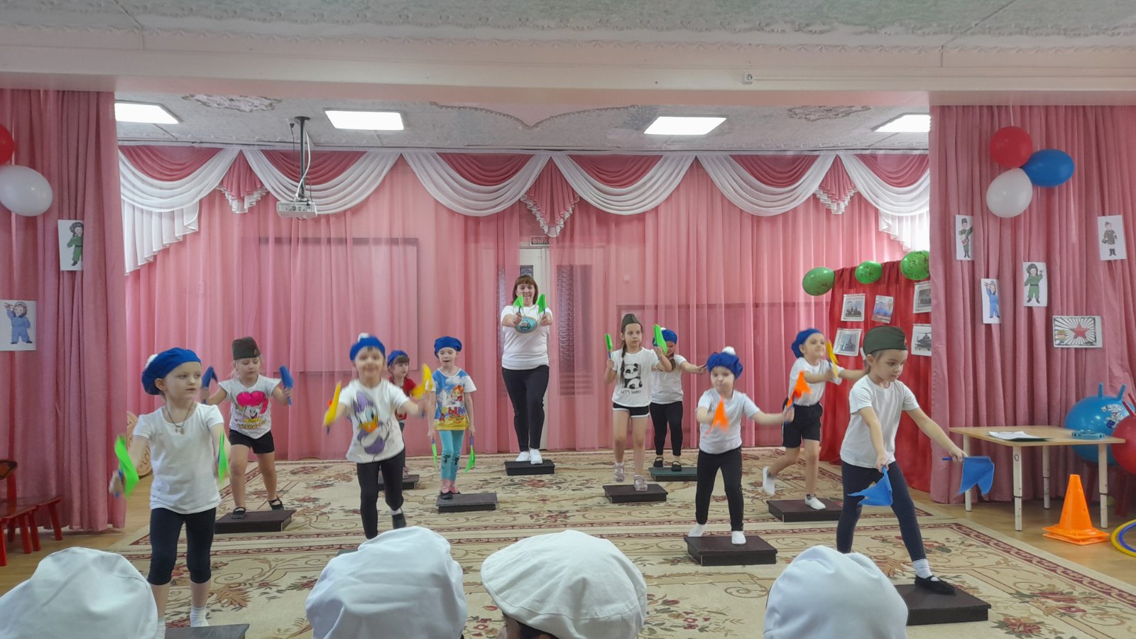 Девочки подготовительных групп дарили мальчикам стихи, раскраски, открытки и даже спортивно-танцевальный комплекс на степ-платформах!