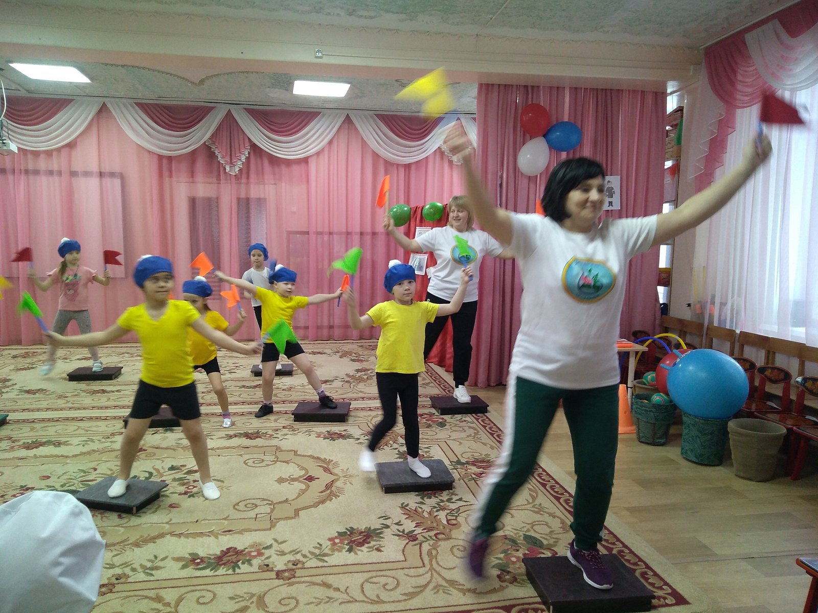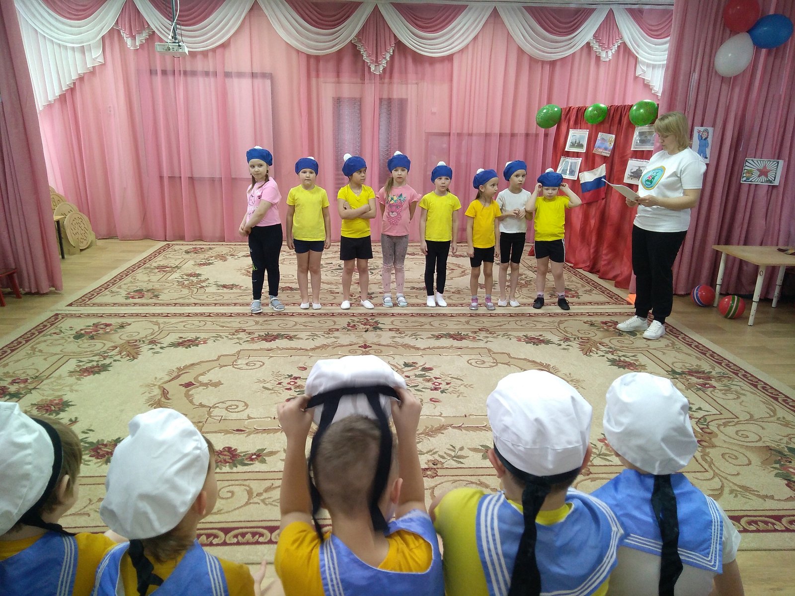 Девочки подготовительных групп дарили мальчикам стихи, раскраски, открытки и даже спортивно-танцевальный комплекс на степ-платформах!
