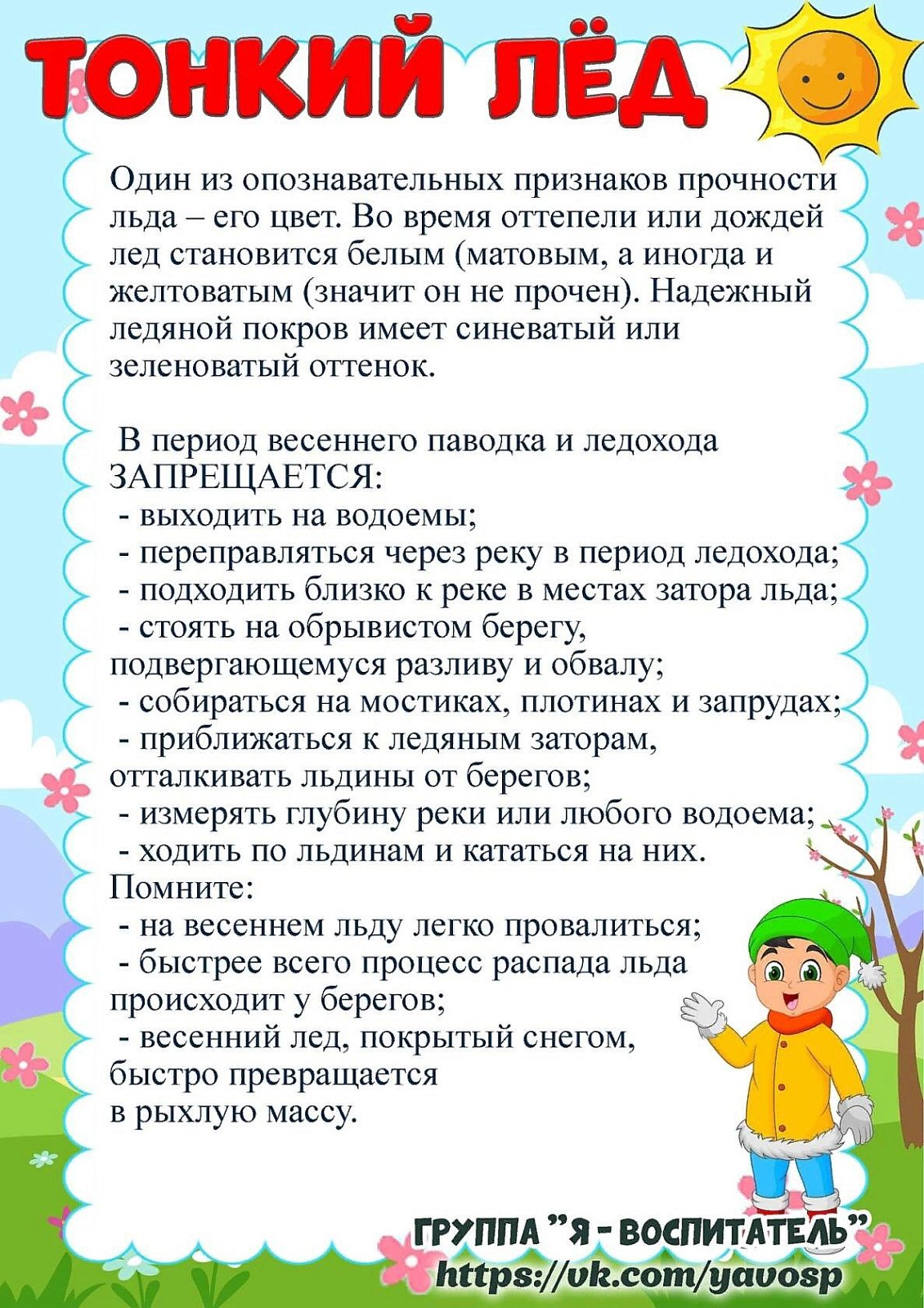 Консультация для детей и родителей "Весна прекрасная, весна опасная"