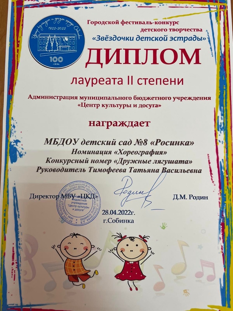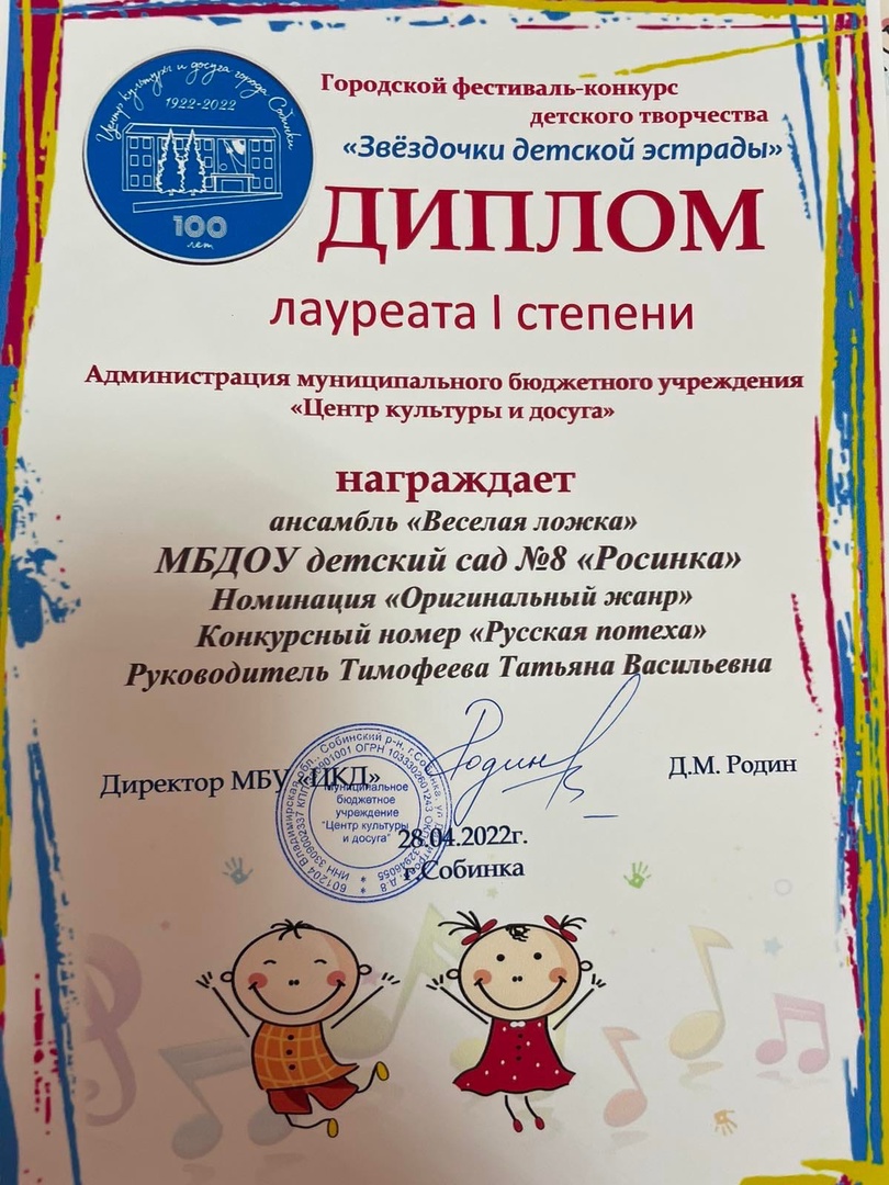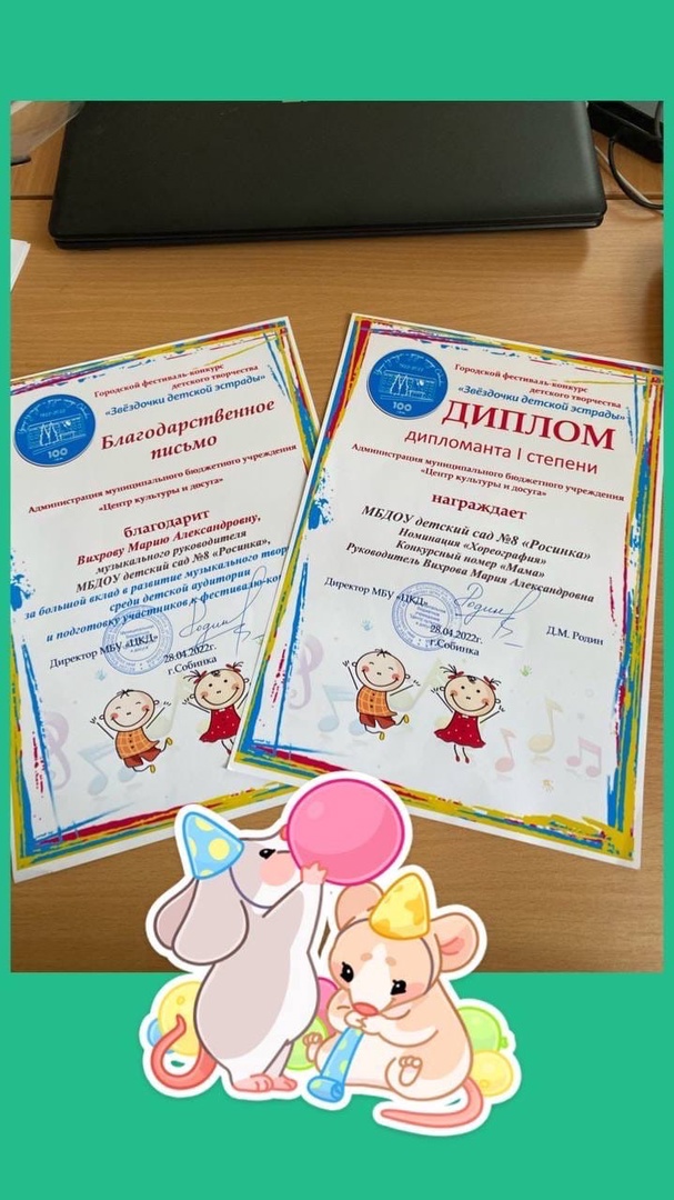 28 апреля в нашем городе прошел фестиваль-конкурс "Звездочки детской эстрады", где наш сад принимал участие. Наши ребята получили награды: победу в номинации "Оригинальный жанр" и призовые места в номинации "Хореография".