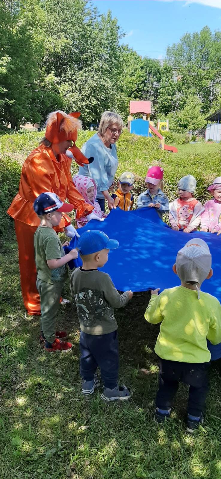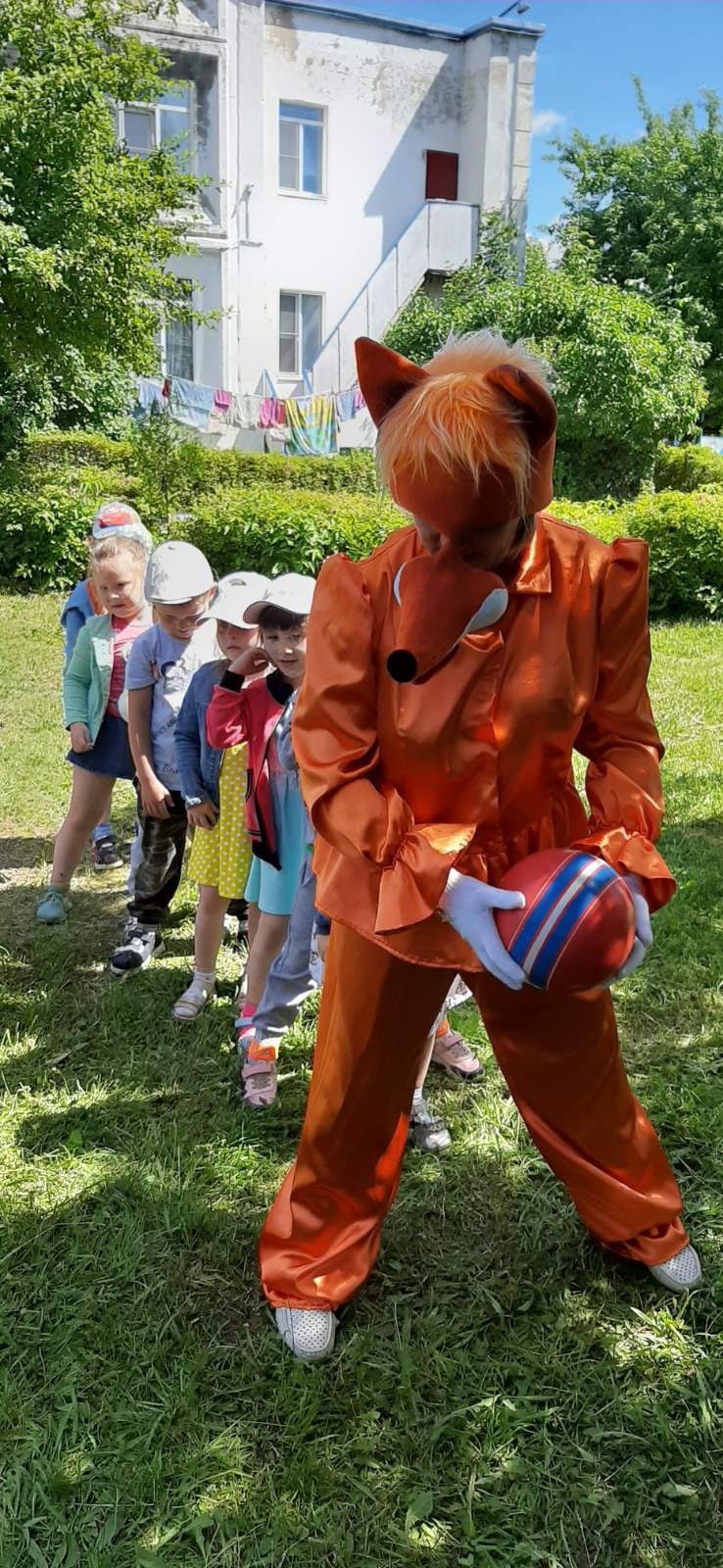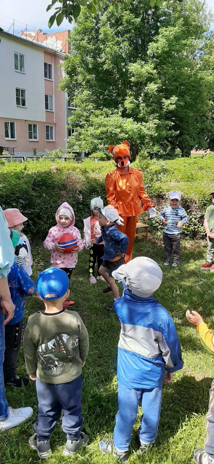 Лисичка прибежала к нашим малышам, чтобы с ними поиграть на улице в весёлые игры с мячом!!!