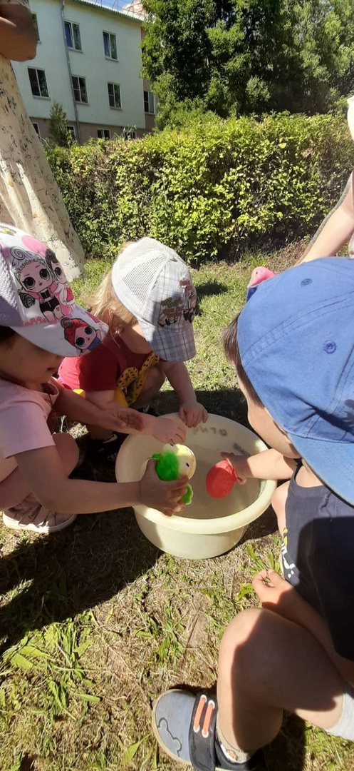 В летний жаркий день с нашими малышами были организованы игры с водой.