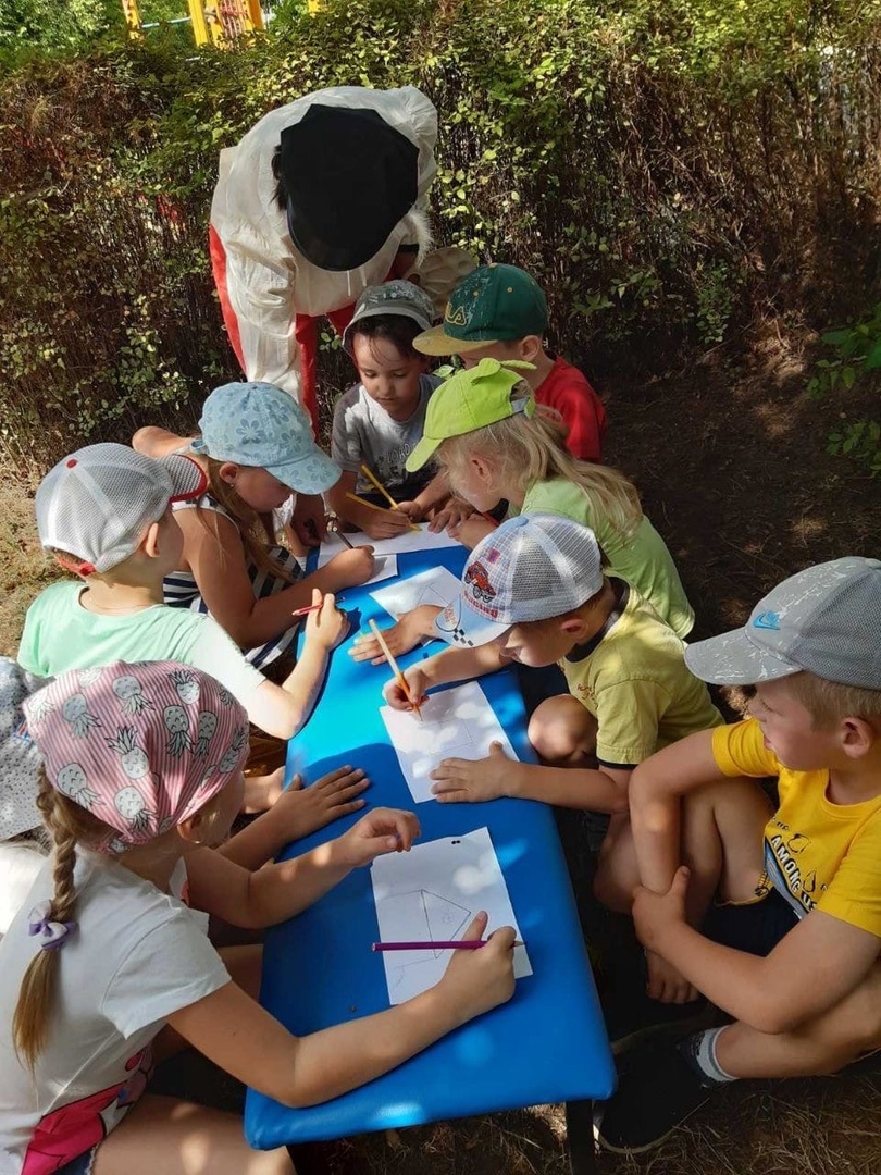 оживляли геометрические фигуры,дружно рисовали солнце.