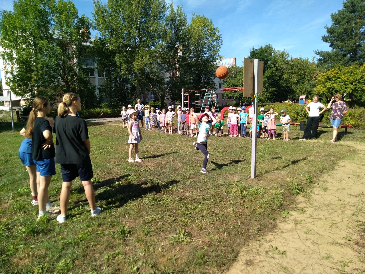 Среди детворы оказалось много желающих забросить мяч в баскетбольное кольцо,... и среди наших воспитанников, по словам баскетболисток,есть ПЕРСПЕКТИВНЫЕ РЕБЯТА!