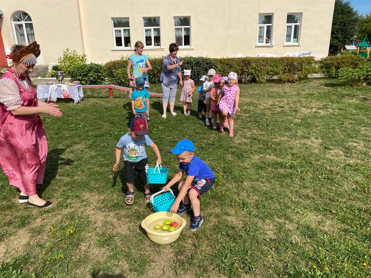 Сегодня в нашем саду прошло мероприятие «Яблочный Спас» , на котором ребята узнали, что этот праздник символизирует начало сбора урожая и окончание лета. Ребят познакомили с историей праздника, они узнали, что на Яблочный Спас принято печь яблочные пироги и пить яблочный компот , а также освящать в церкви яблоки, а также другие фрукты и овощи. Мы поиграли с детьми в разные подвижные игры и водили дружные хороводы, танцевали. После праздника было чаепитие, где наша детвора угощалась пирогами из яблок и другими разными вкусностями.
