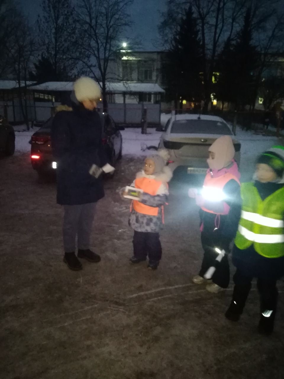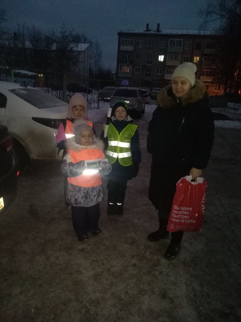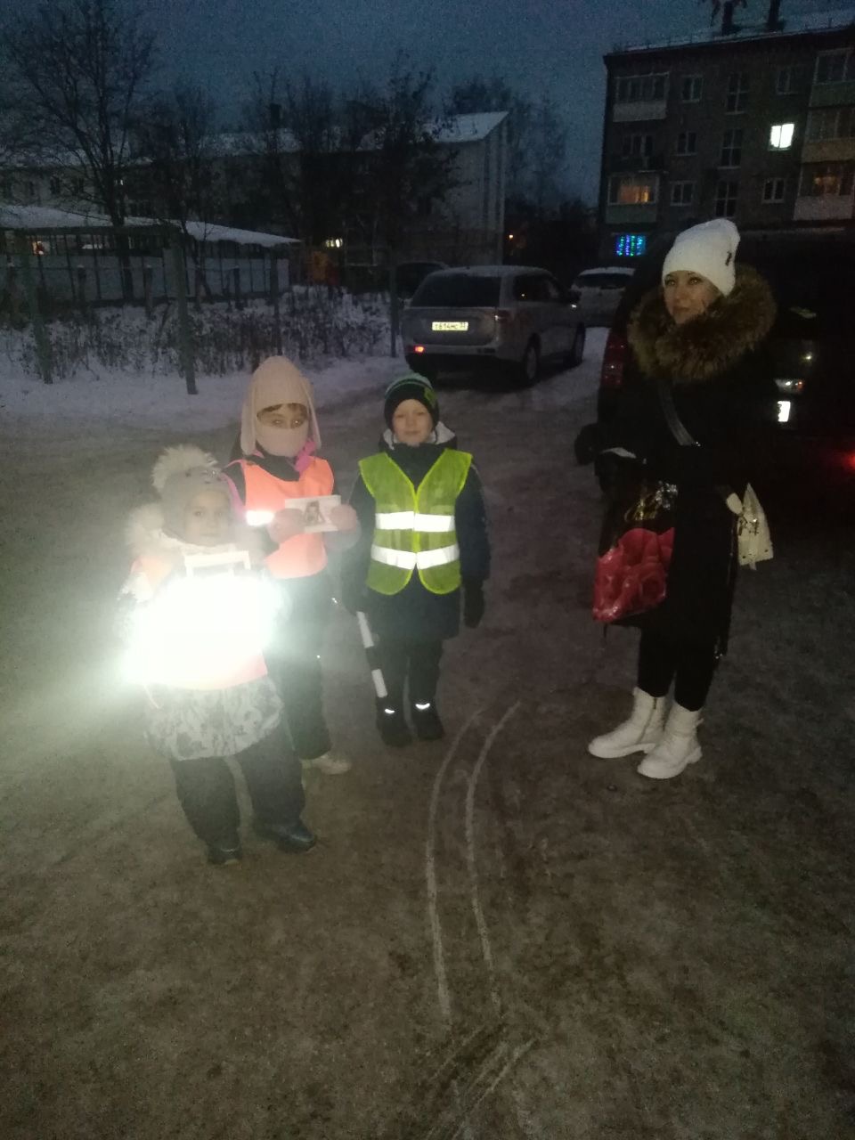 Утренний рейд ОТРЯДА ЮИД МБДОУ д/с N8 "РОСИНКА" с инспектором по пропаганде дорожного движения отделения ГИБДД ОМВД России по Собинскому району КОРНИЛОВОЙ ТАТЬЯНОЙ ВЛАДИМИРОВНОЙ. Мы проверяли соблюдение правил перевоза детей в автомобиле в АВТОКРЕСЛАХ!!!! И наличие СВЕТОВОЗВРАЩАТЕЛЬНЫХ ЭЛЕМЕНТОВ на одежде детей, чтобы быть видимым в тёмное время суток.