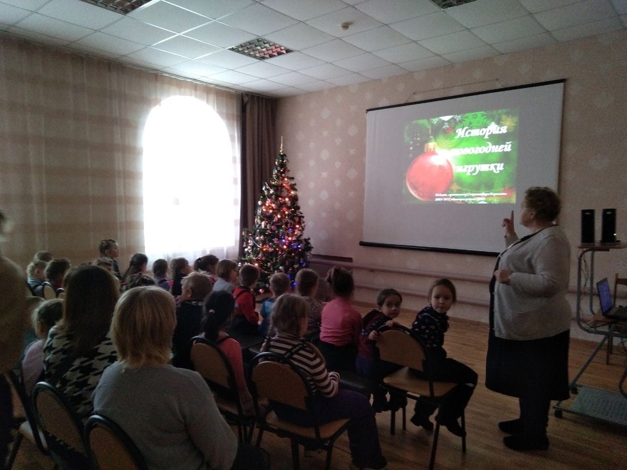 ВЕРА БОРИСОВНА очень интересно поведала детям историю Новогодней игрушки. Оказывается, встречали Рождественские праздники, а Дед Мороз-то был не совсем добрым, а приходил только к непослушным детям, чтобы заморозить их!!... А вместо игрушек на ёлку вешали и орехи, и фрукты, и пряники...В 18ом веке начали производить первые стеклянные шары в Германии стеклодувы.