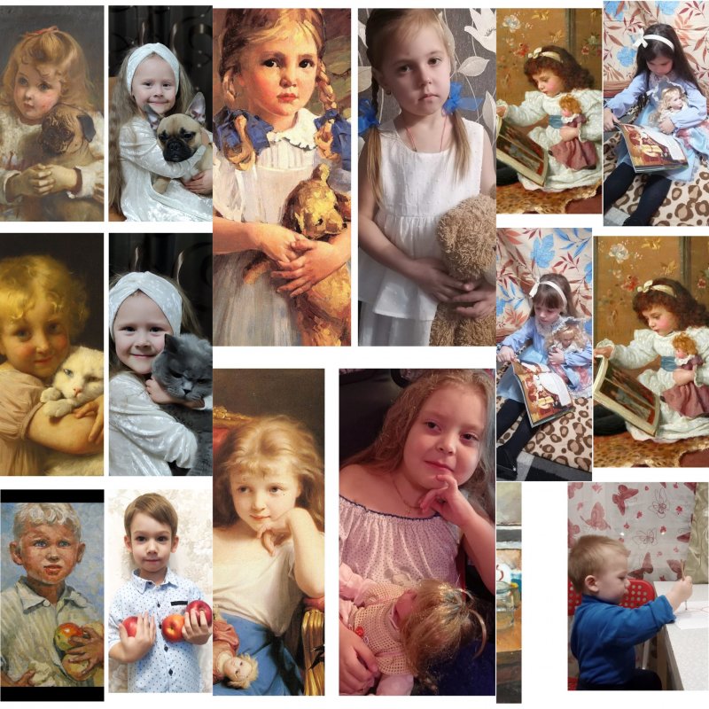 Родители и дети «примеряли» на себе образы героев произведений художников и воссоздавали картину.