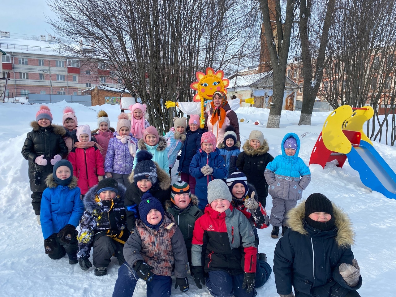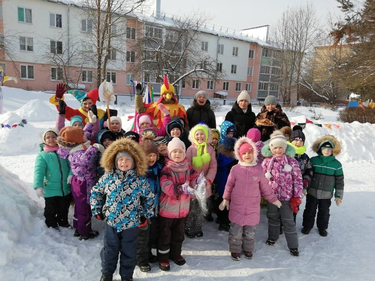 С веселыми кричалками, частушками, хороводами и русскими народными песнями встречали Масленицу в нашем детском саду. На улице было организовано празднование Масленицы для подготовительных групп.