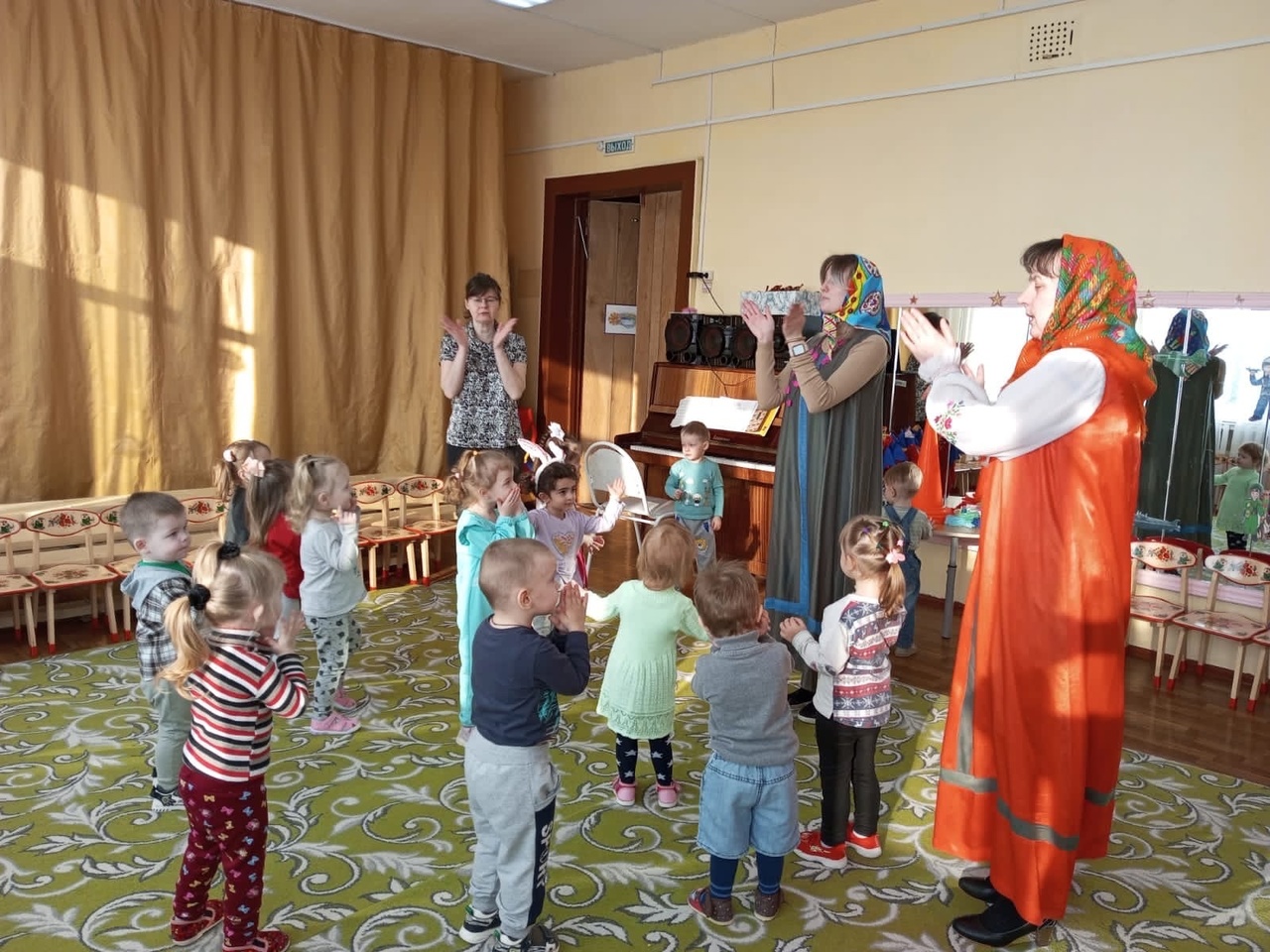 Как положено на празднике, дети от души веселились: водили хоровод вокруг масленицы, пели русскую народную песню "Блины".