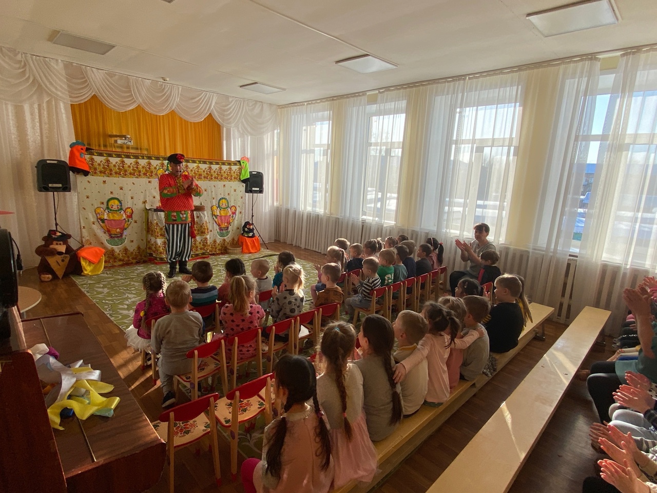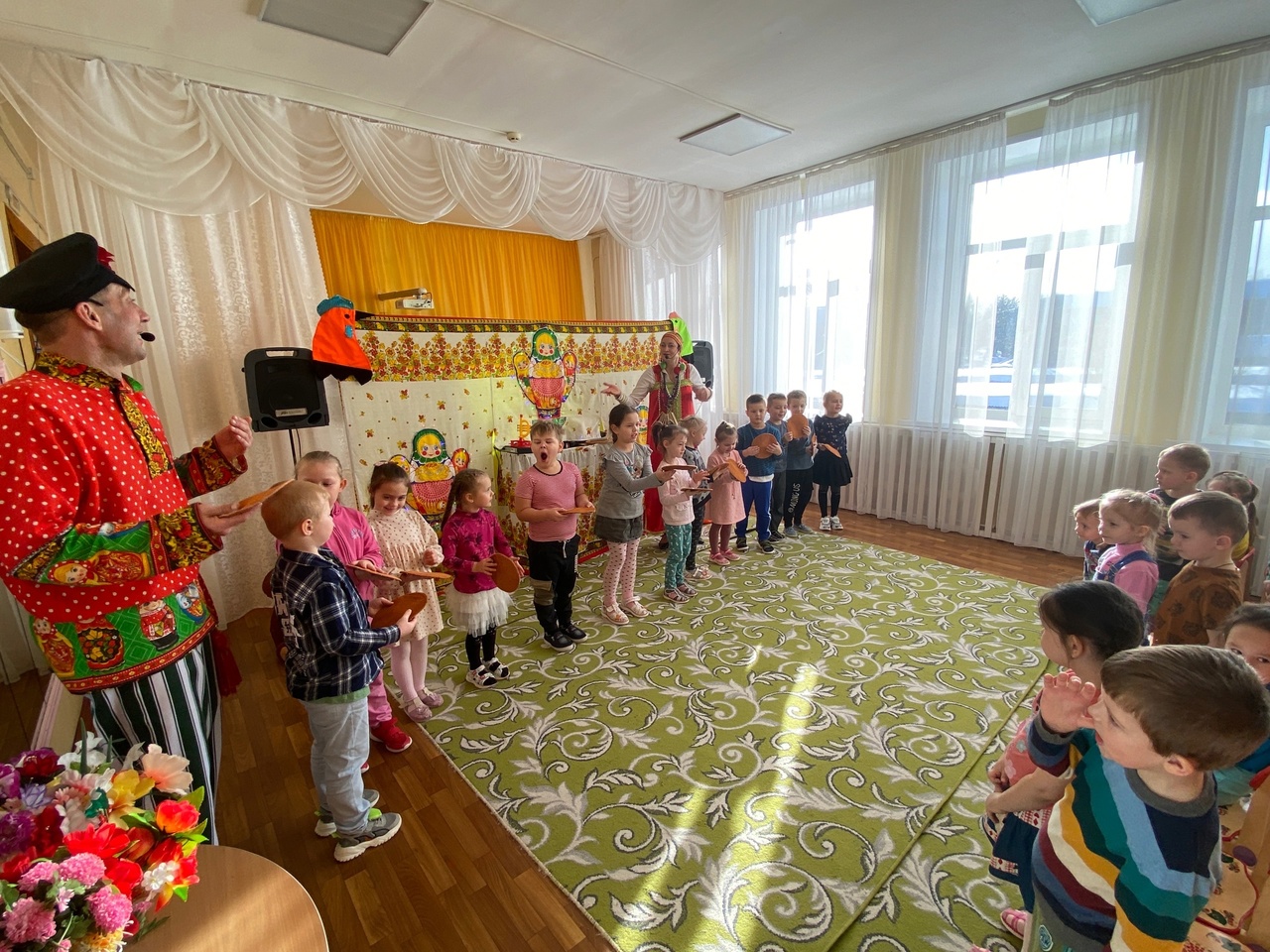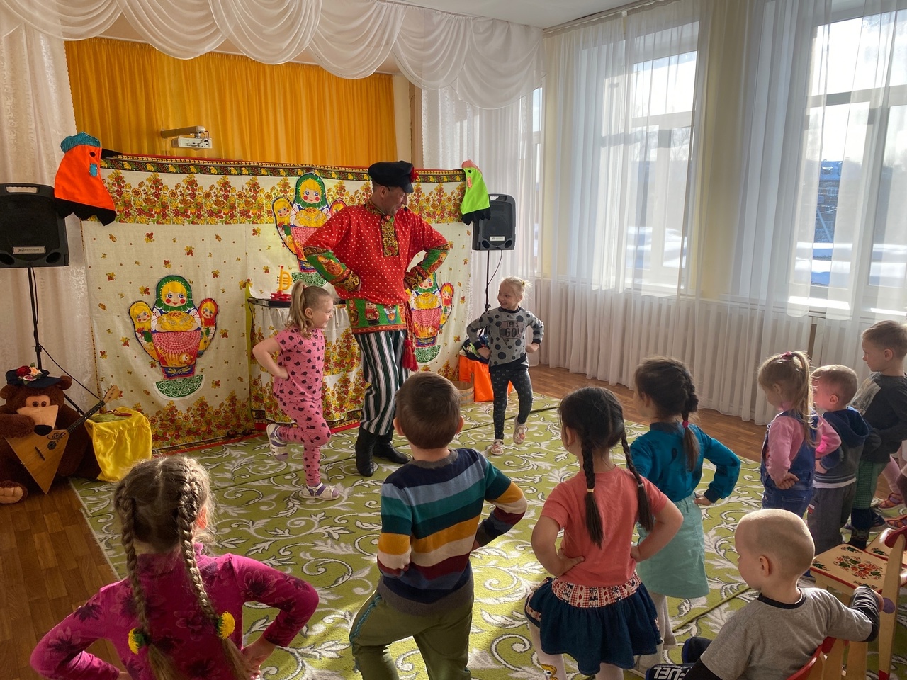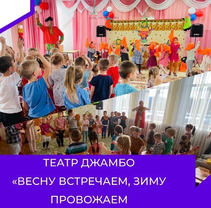 Недавно в наш детский сад приезжал театр «Джамбо», с музыкальным представителем «Весну встречаем, зиму провожаем». Представление было очень ярким. Артисты пели в живую. Было очень весело и интересно. Мы и спели, и потанцевали, и весело поиграли.