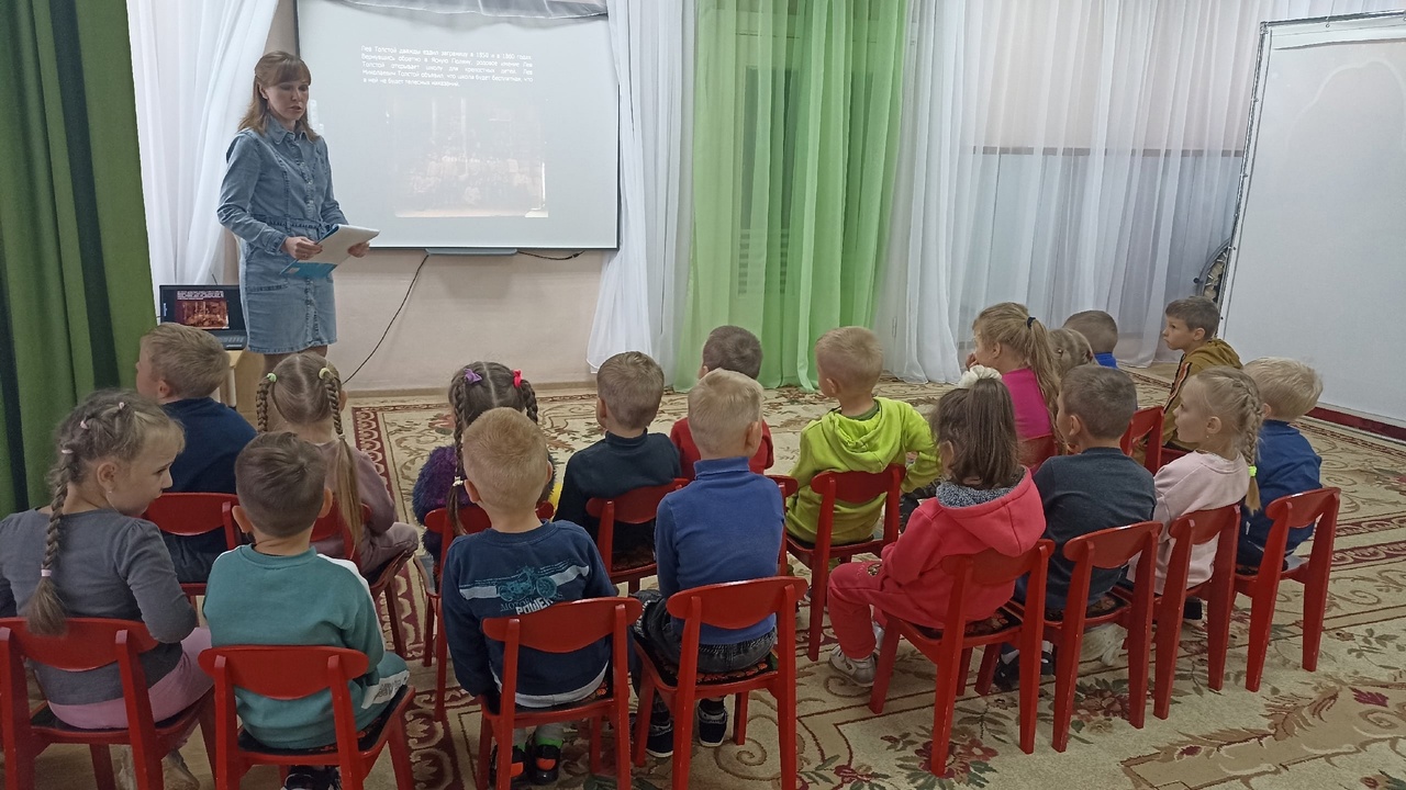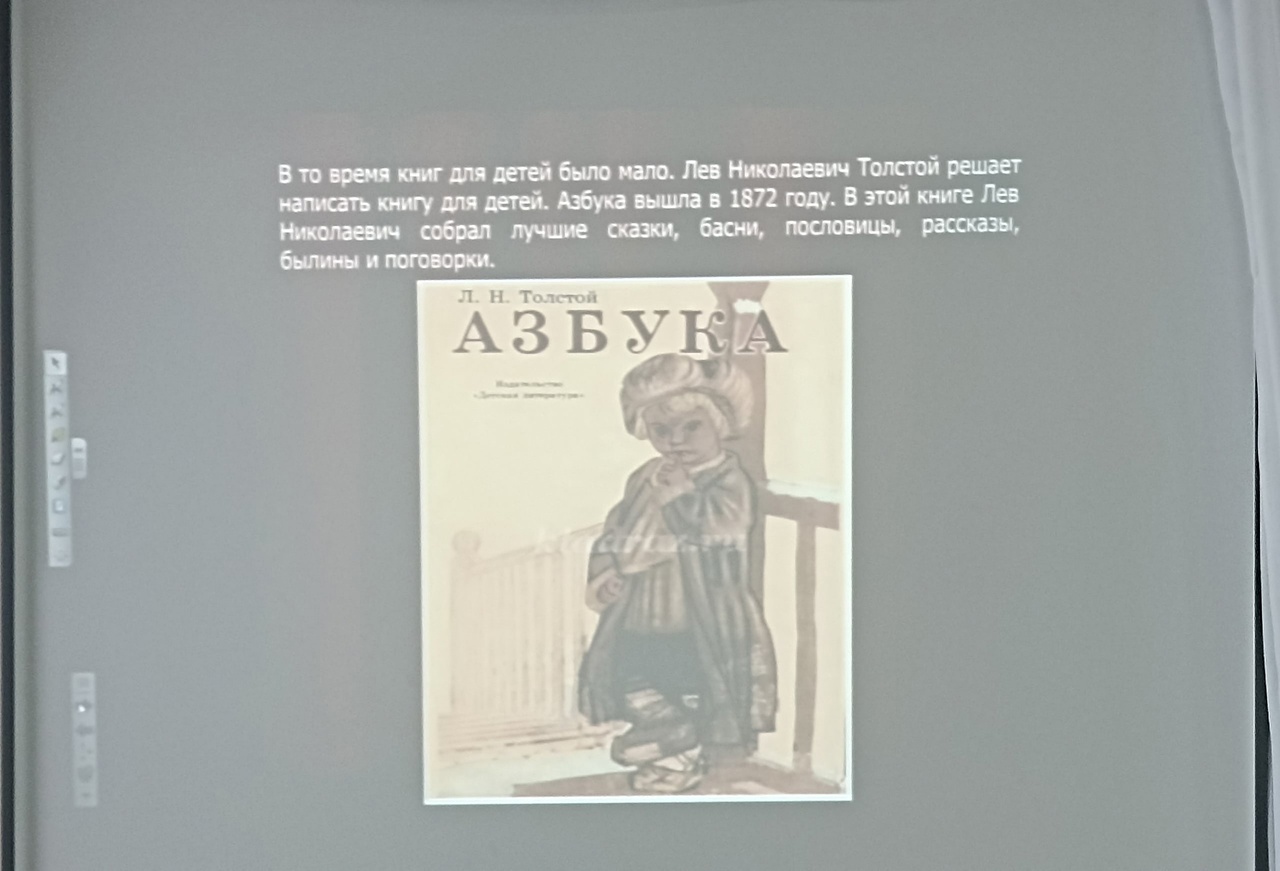 ????????В рамках этого дня и в связи с 195 летием со дня рождения знаменитого писателя Л.Н. Толстого учитель- логопед Наталья Николаевна Ларина провела познавательную игру- путешествие по творчеству писателя. Ведь именно Лев Николаевич в 1872 году создал для ребят АЗБУКУ, в которую вошли лучшие сказки, басни, пословицы, рассказы, былины и поговорки .