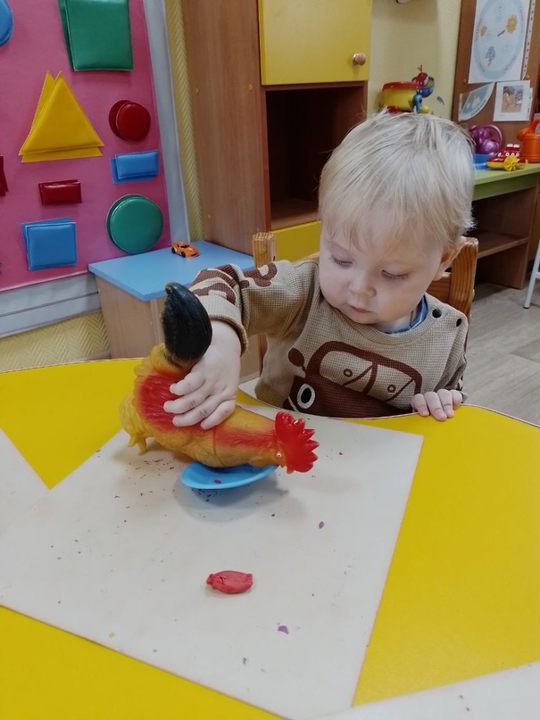 Продолжаем детей знакомить с пластилином.