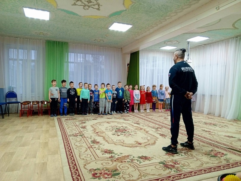 Сегодня ребята подготовительной группы "Пчёлка" познакомились с тренером по боксу и ОФП Собинской спортивной боксёрской секции Михаил Года.