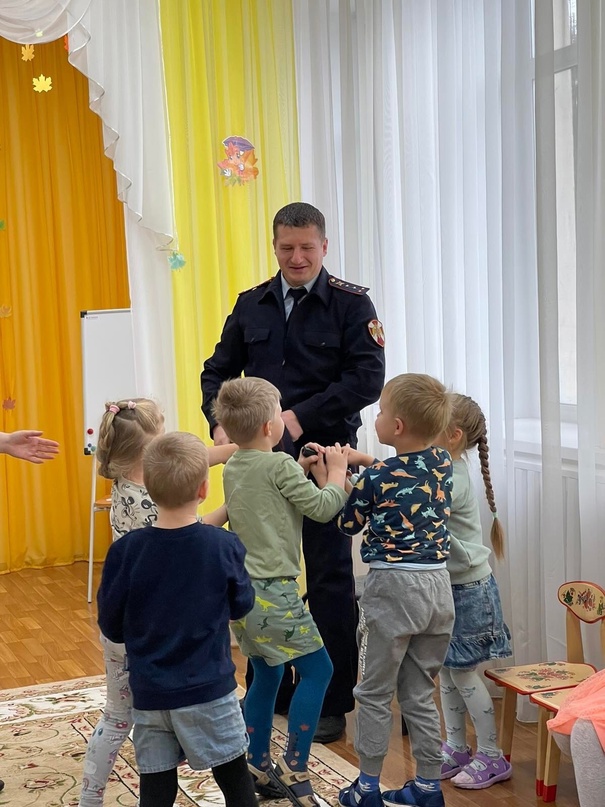 У нас сегодня прошло мероприятие «Встреча с интересным человеком». В качестве гостя был приглашен капитан полиции И.В.Финогенов, папа воспитанника Финогенова Марка ( воспитатель Максимович Людмила Викторовна).