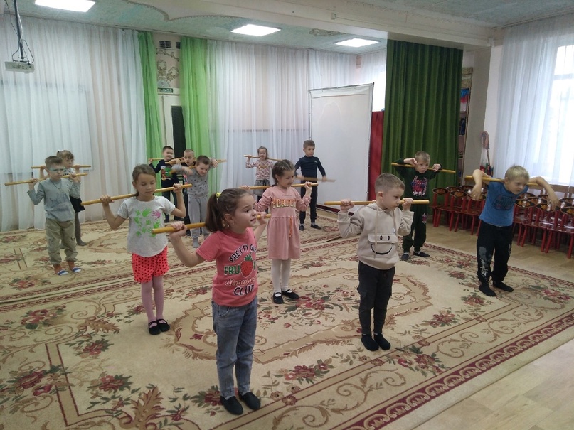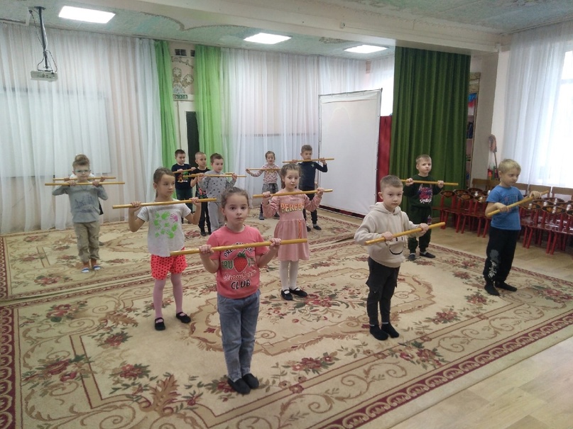 Использование гимнастических палок на занятиях очень увлекает и даёт возможность почувствовать нагрузку на все группы мышц.