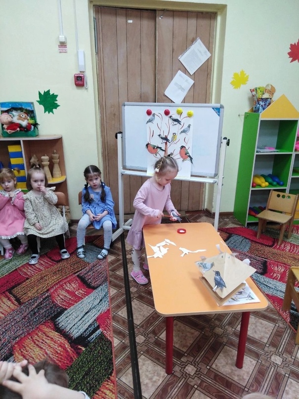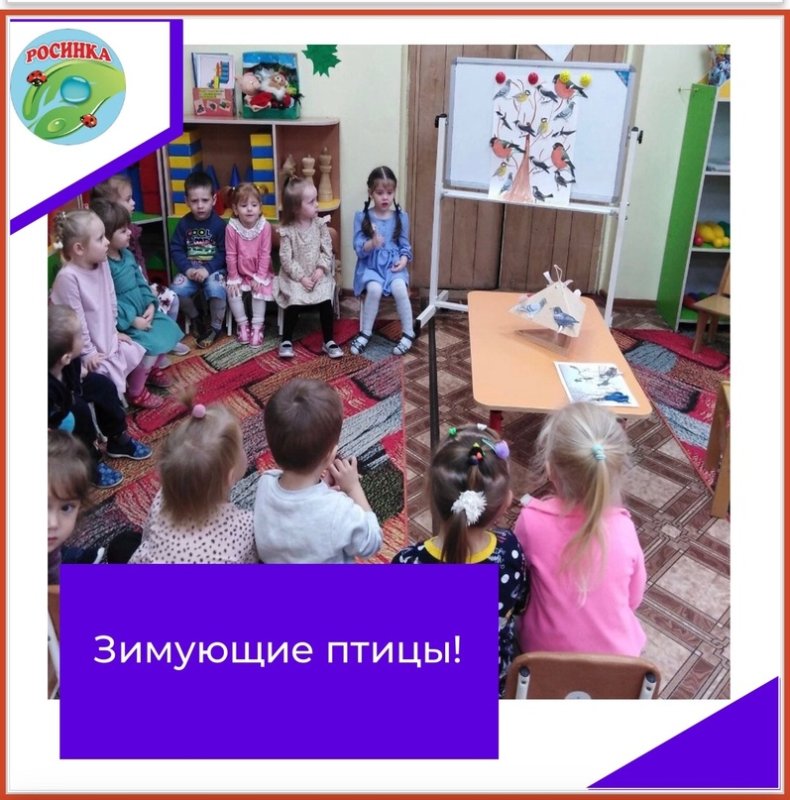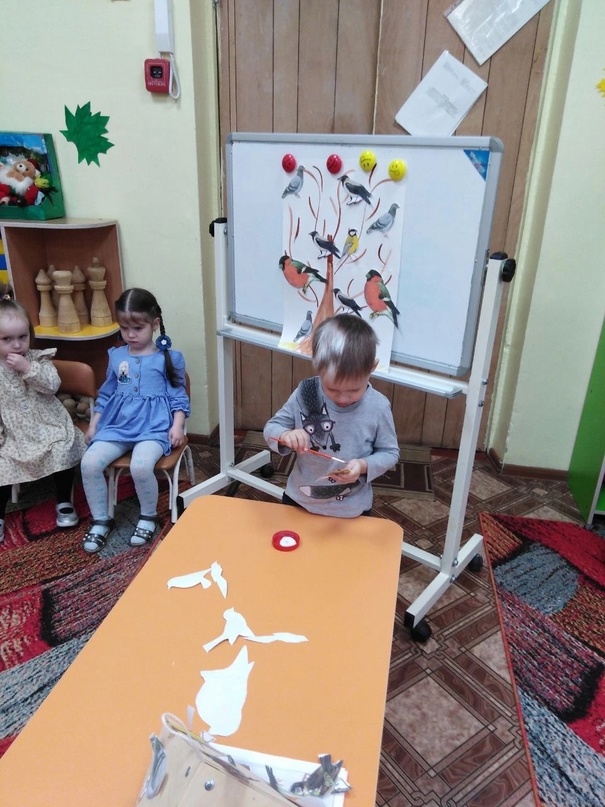 Воспитатель Тощева Ольга Алексеевне провела интересное занятие, на котором ребята закрепляли полученные знания о внешнем виде снегиря и синички, отгадывали загадки о птицах и выполнили коллективную работу по зимующим птицам.