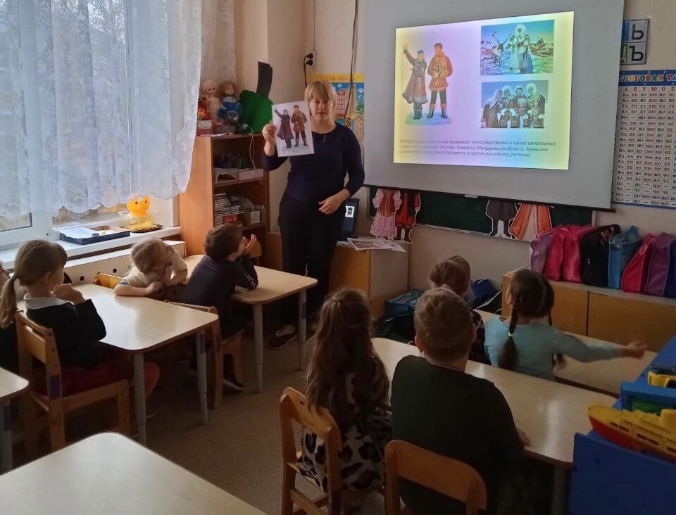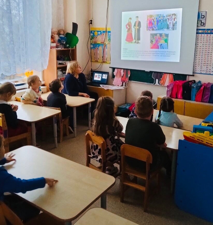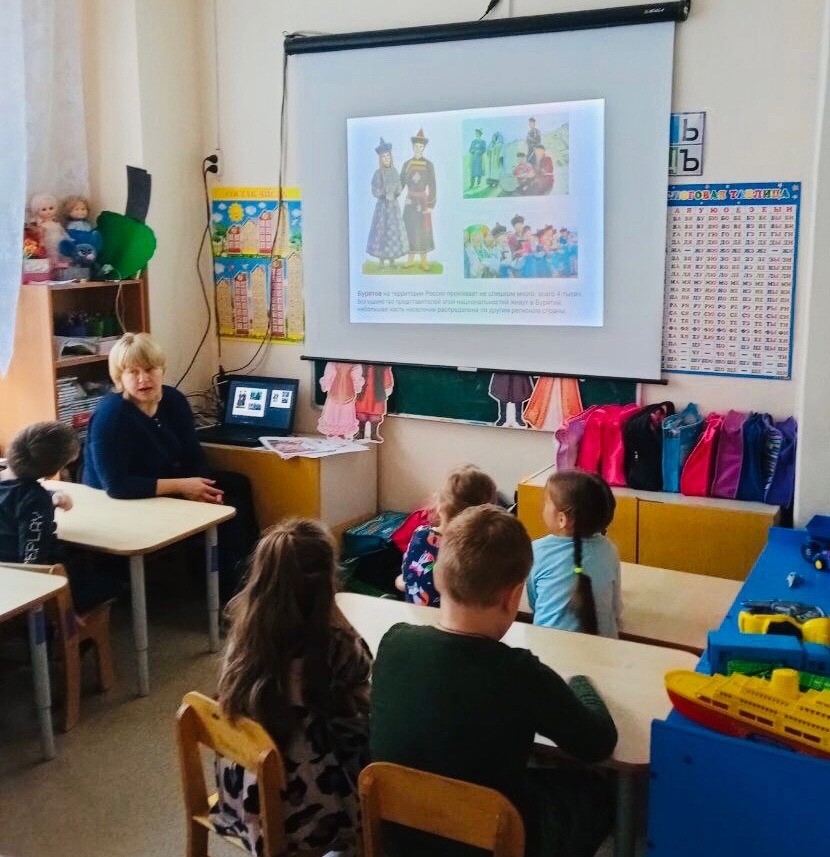 Ребята подготовительной группы "Пчёлка" в рамках образовательной деятельности познакомились с народами России. Воспитатель Кузнецова Елена Васильевна показала ребятам презентацию "Народы России", познакомила детей с многонациональным составом населения России, с народными костюмами, предметами национальных промыслов народов России, с культурой и традициями.