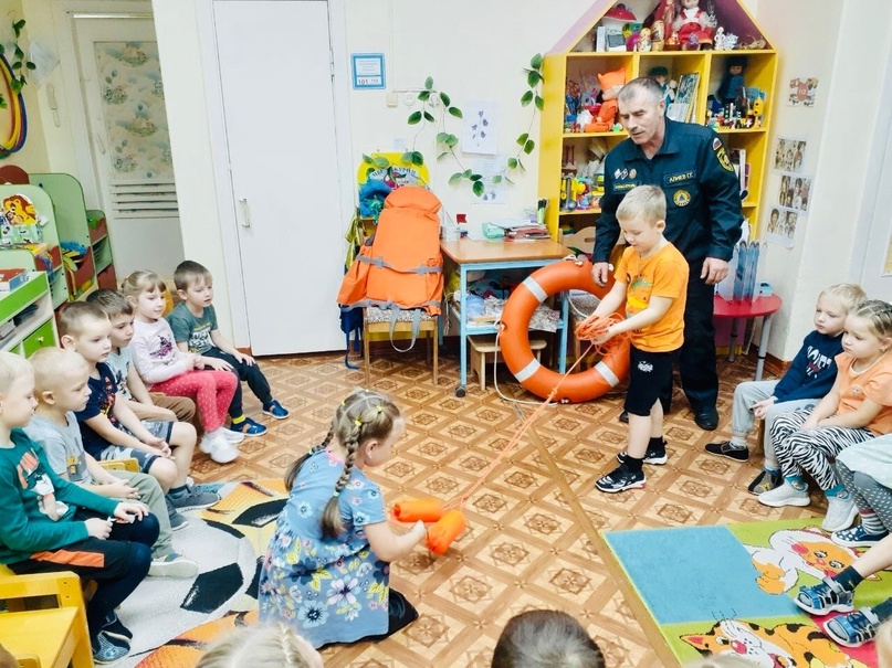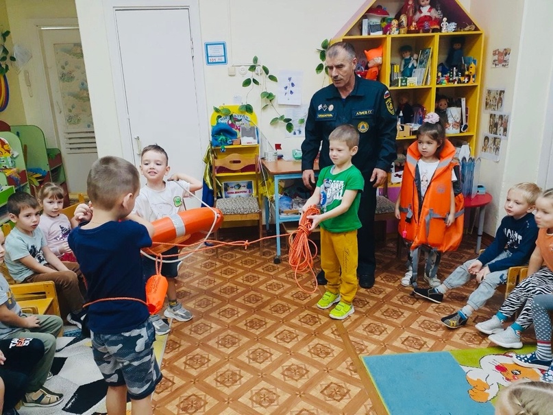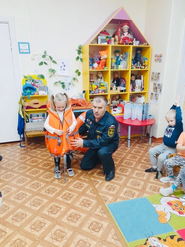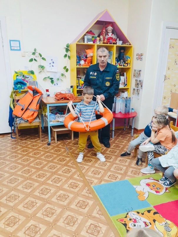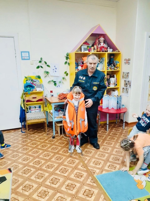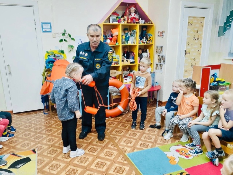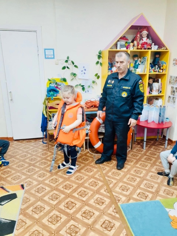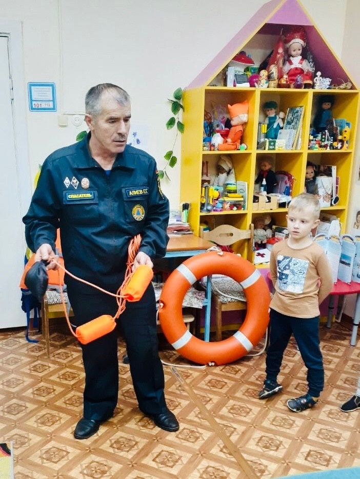 В целях предупреждения несчастных случаев на водоёмах в осенне-зимний период в наше дошкольное учреждение был приглашен спасатель водной станции, он же папа Алиева Руслана - Алиев Г.Г.