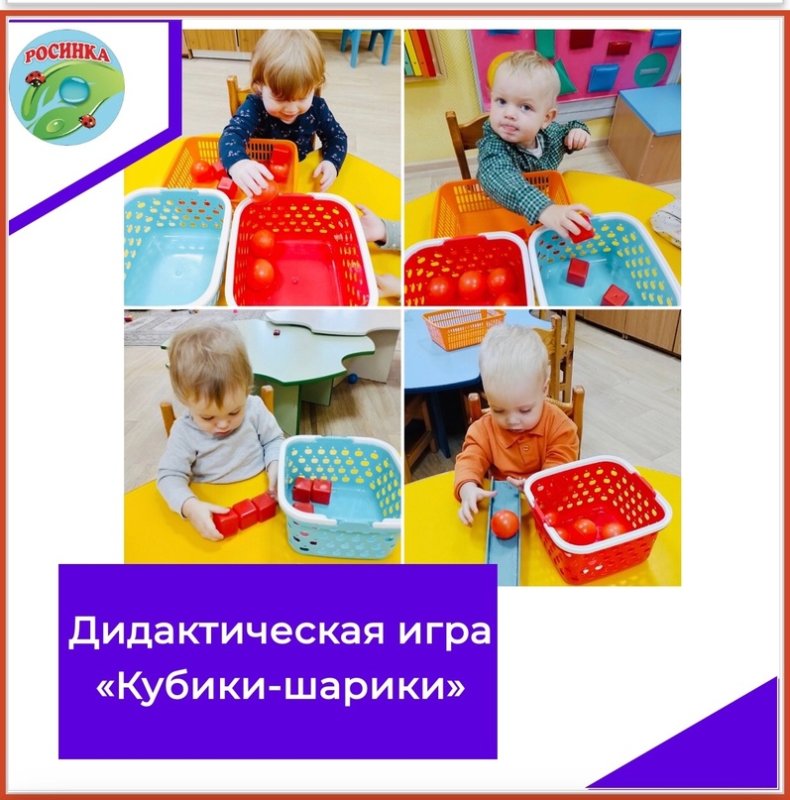 Цель игры: учить различать форму — шар и куб,название «шарик» и «кубик», закрепляем красный цвет.