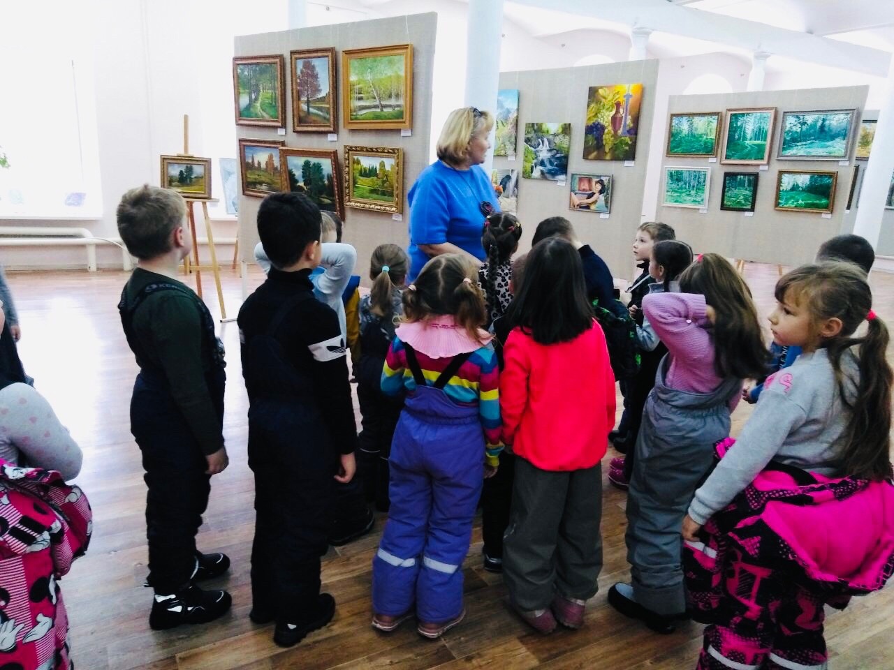 Сегодня гостями выставки художников Собинского края "Осенний блюз" стали ребята старшей и подготовительной групп ( воспитатели Кузнецова Елена Васильевна, Максимович Людмила Викторовна).
