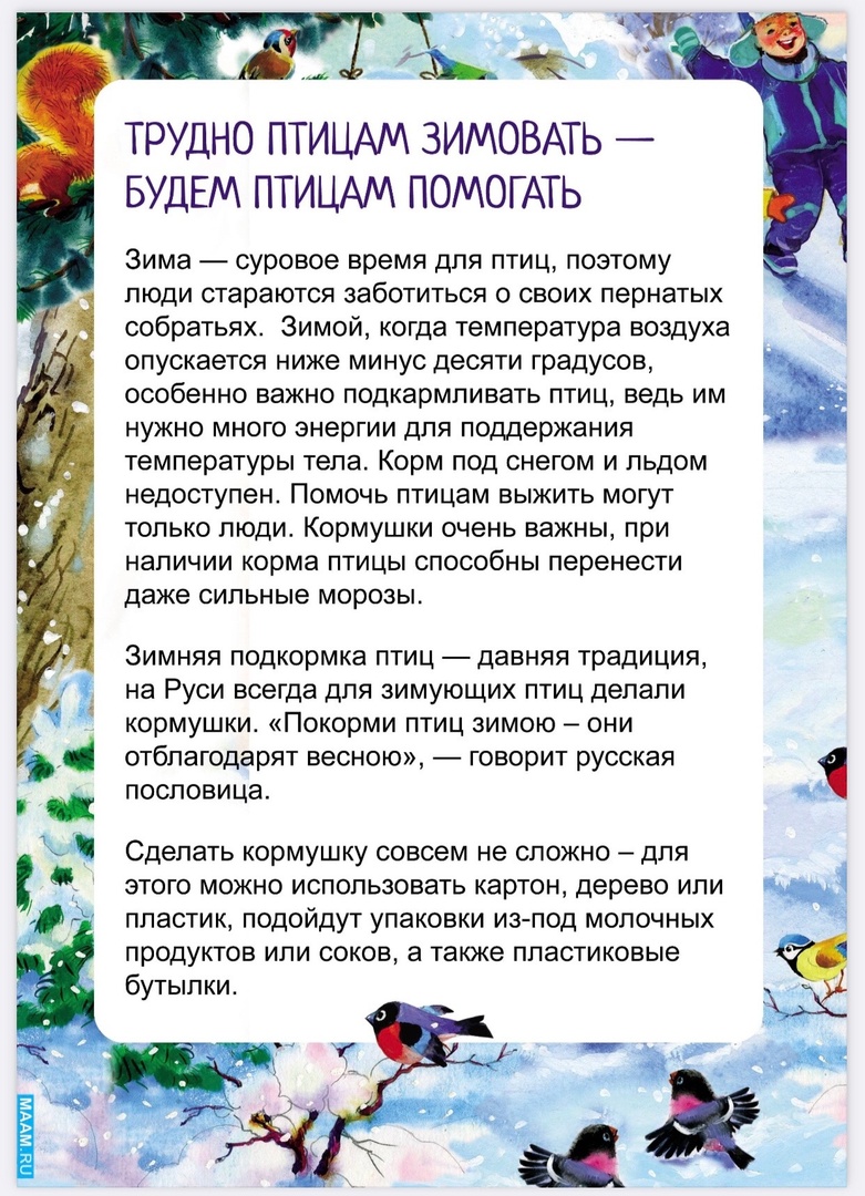 Трудно птицам зимовать-будем птицам помогать