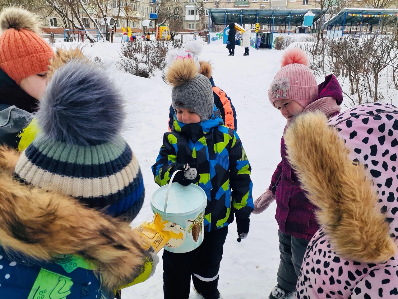 С целью проявить заботу о голодающих и замерзающих зимой птицах, на участке старшей группы "Колокольчик" воспитанники с воспитателем Корневой Валентиной Николаевной повесили кормушки и посыпали угощения братьям нашим меньшим. С этого дня ребята пообещали беречь своих пернатых друзей и кормить их каждый день.