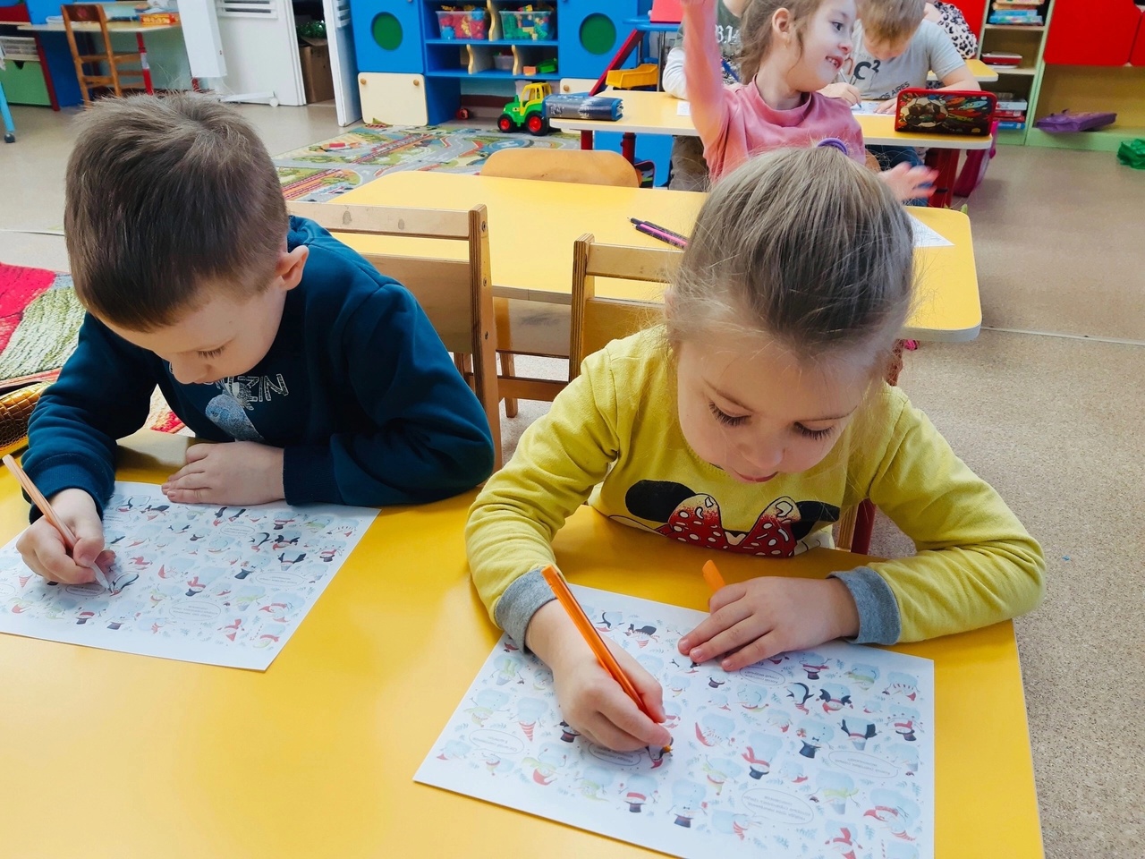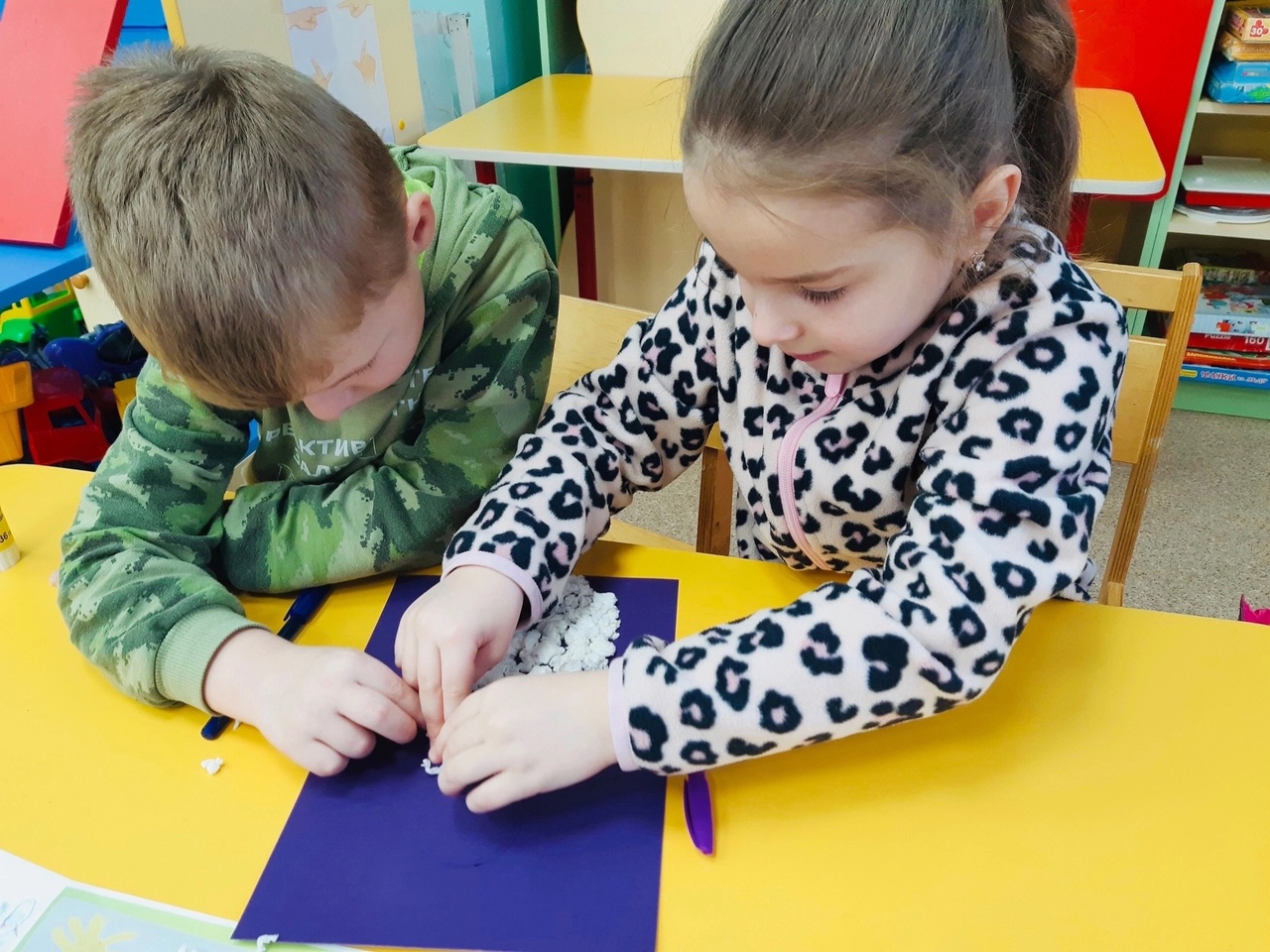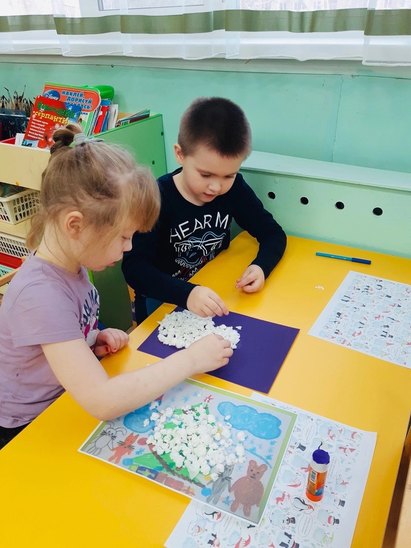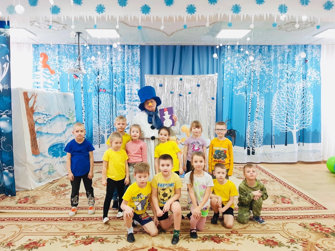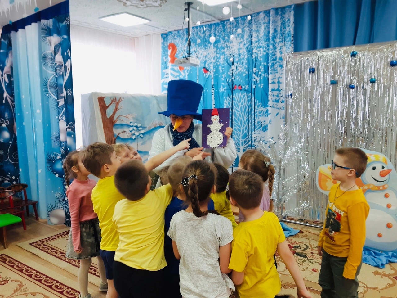 Все вместе ребята приготовили Снеговику в подарок открытку!