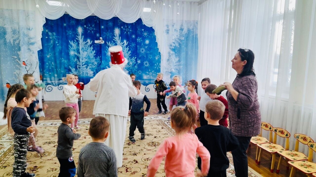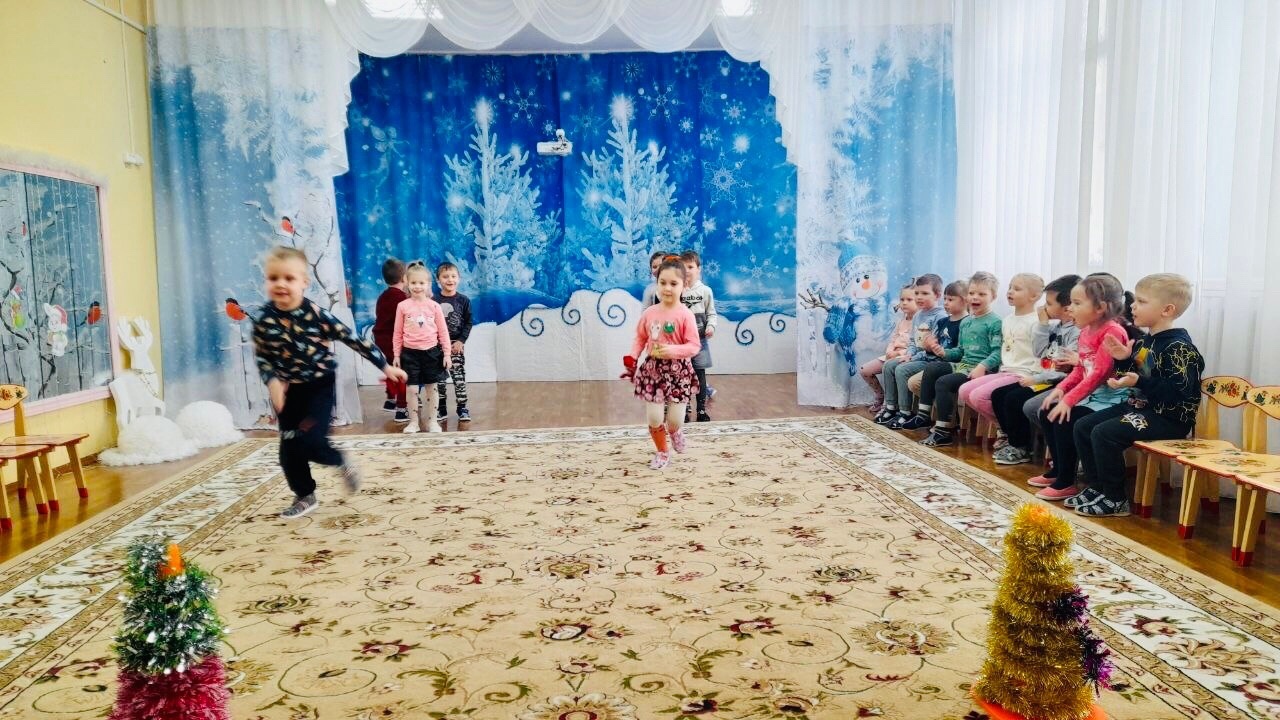 Поздравляем с днём рождения Снеговика. Спели "Каравай", участвовали в соревнованиях, вместе со Снеговиком поиграли в музыкальную игру и подарили ему подарок ( воспитатель Максимович Людмила Викторовна)