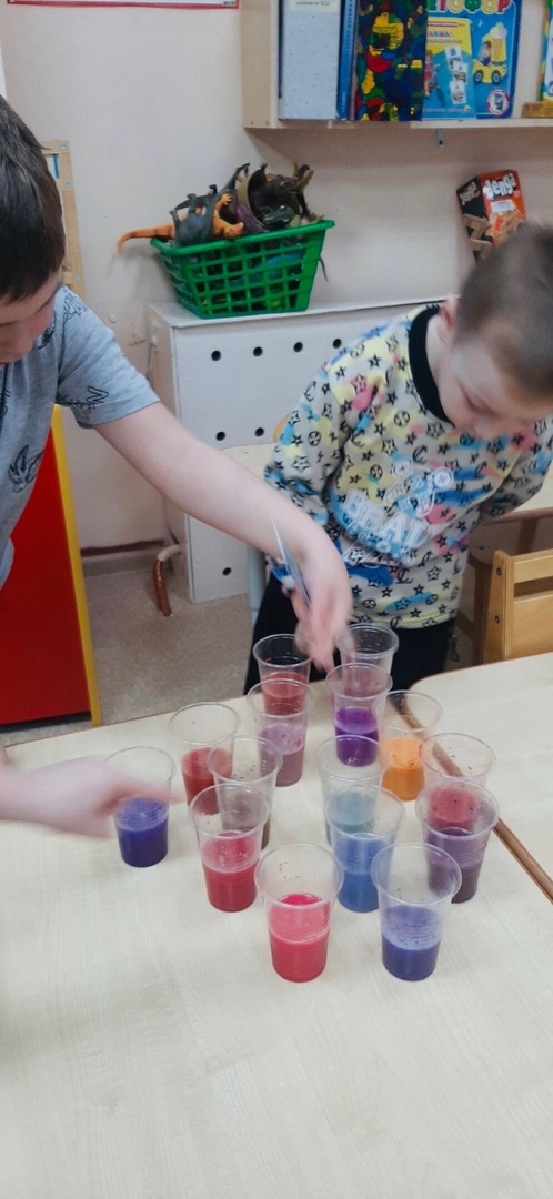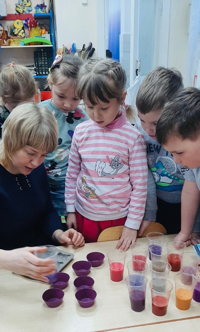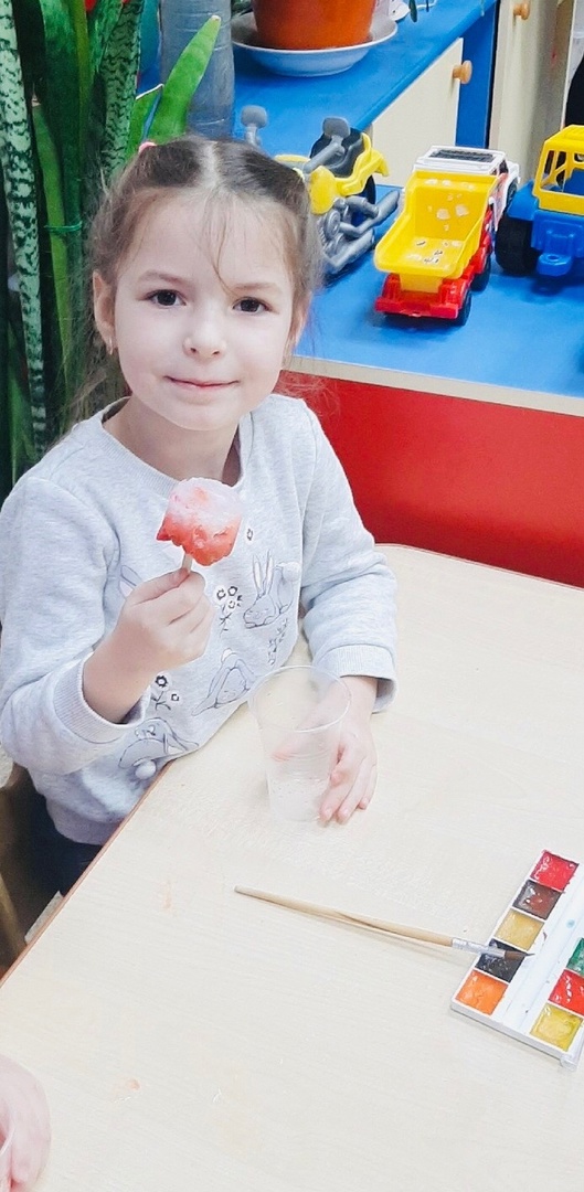 Покрасили снег, ждали когда он растает, залили в формы. Вынесли на мороз.Будем ждать цветные льдинки!