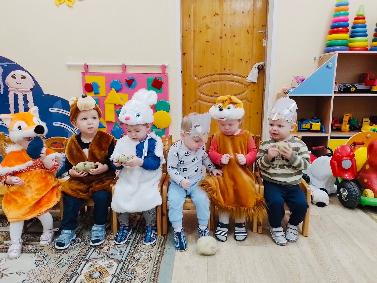 У нашей малышни всегда насыщенные дни! Посмотрели сказку «Теремок», обыграли потешку «Сидит белочка в тележке», поиграли в подвижную игру «Как на горке- снег, снег...» ( воспитатель Титова Алла Геннадьевна).