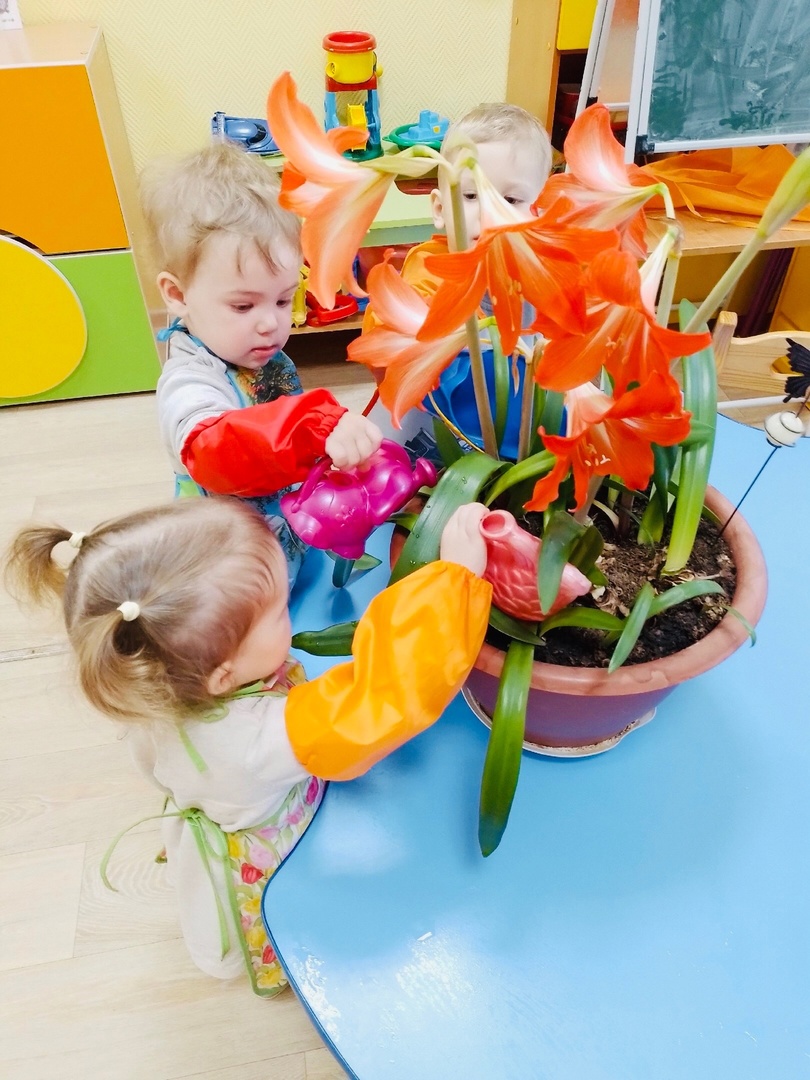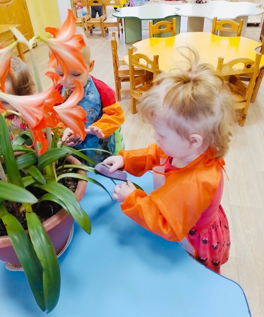 Формирование представлений детей раннего возраста о комнатных растениях и об уходе за ними. Листочки помыли, цветок полили ( воспитатель Титова Алла Геннадьевна)