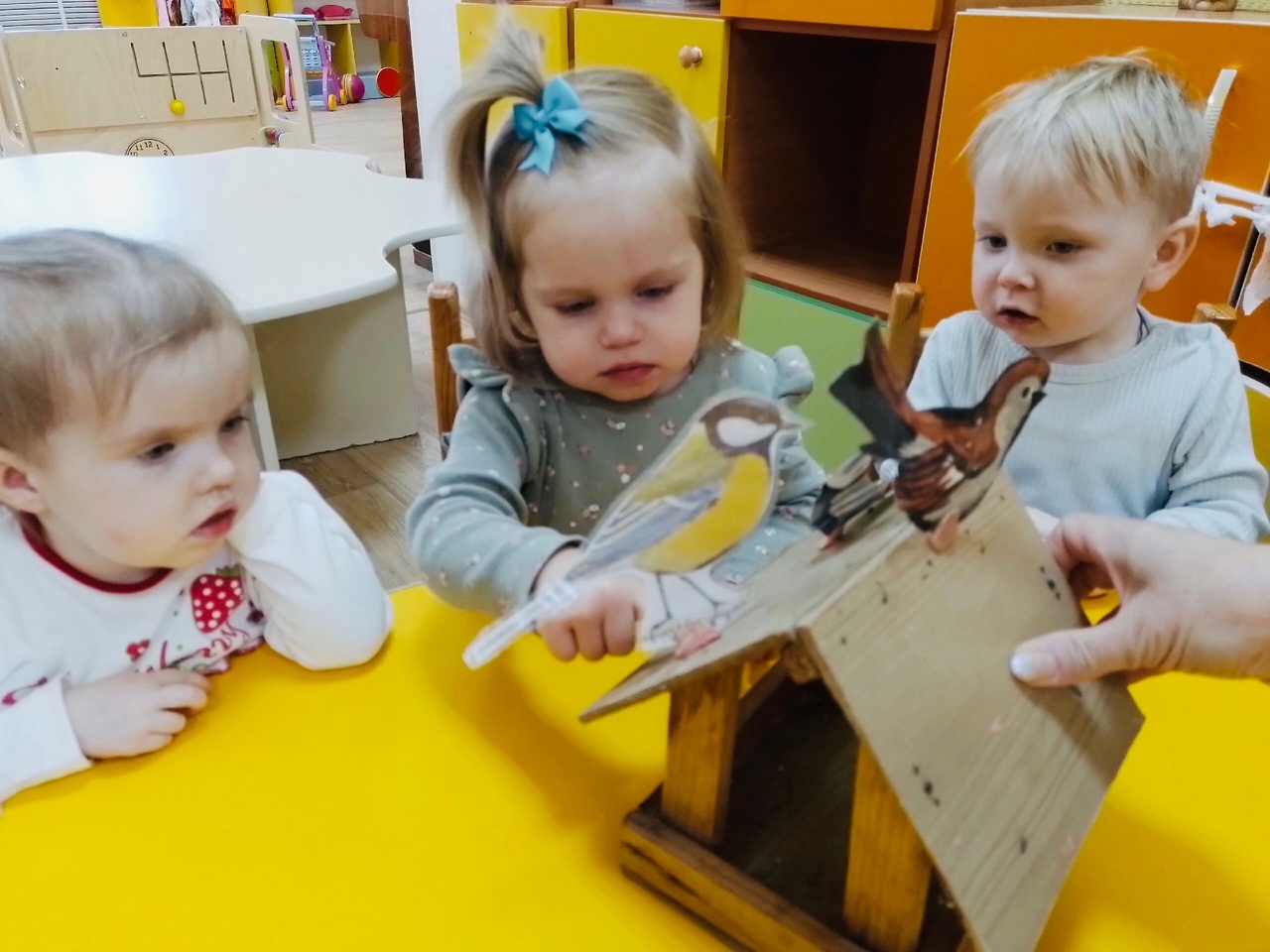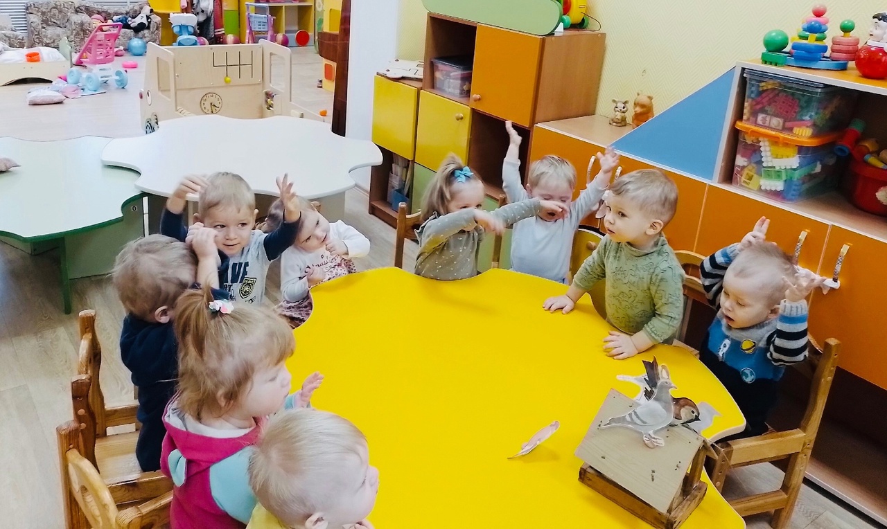 Формирование элементарных представлений детей о птицах. Обыгрывание потешки «Сел на ветку снегирёк» в 1 младшей группе «Солнышко» ( воспитатель- Титова Алла Геннадьевна).