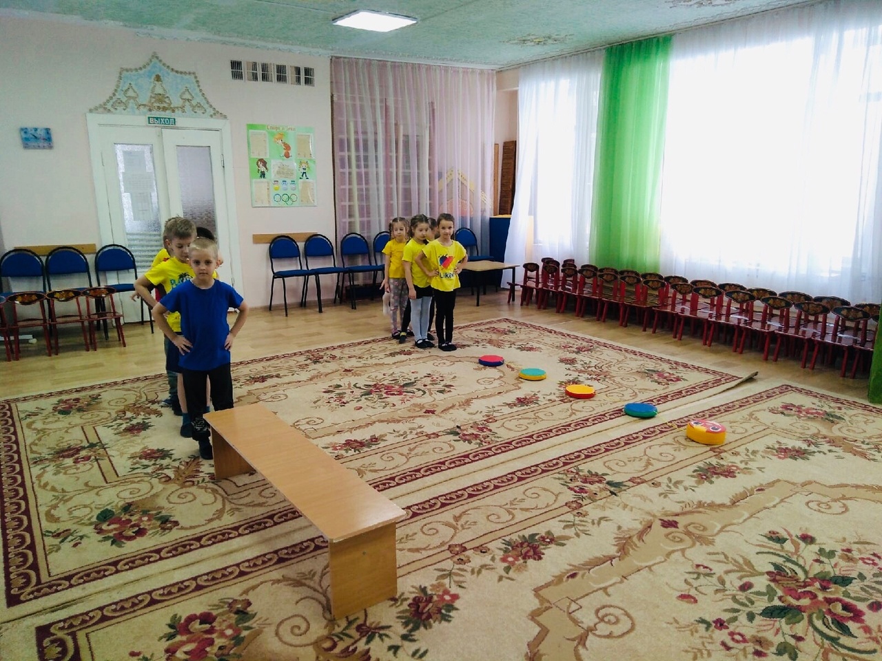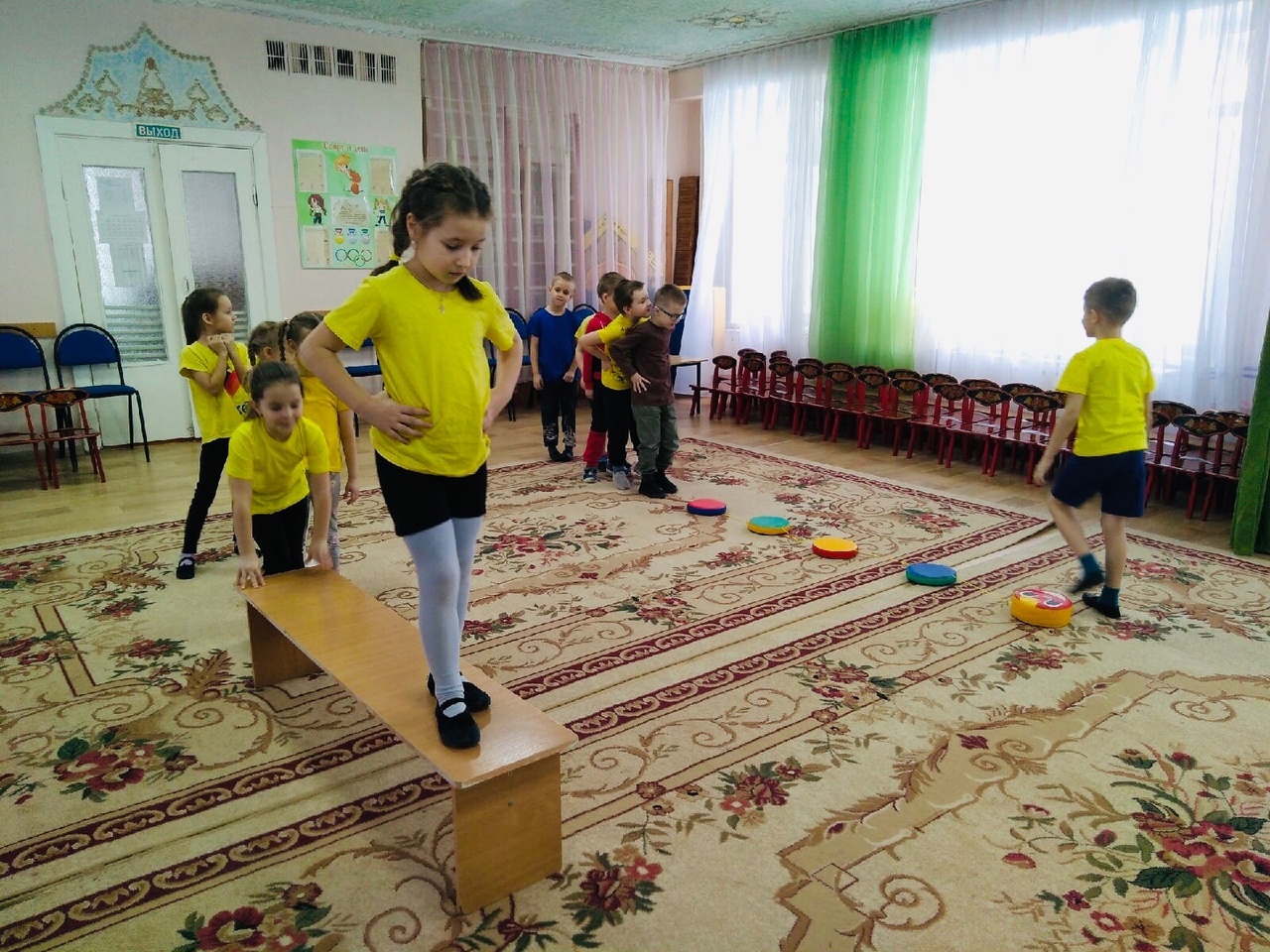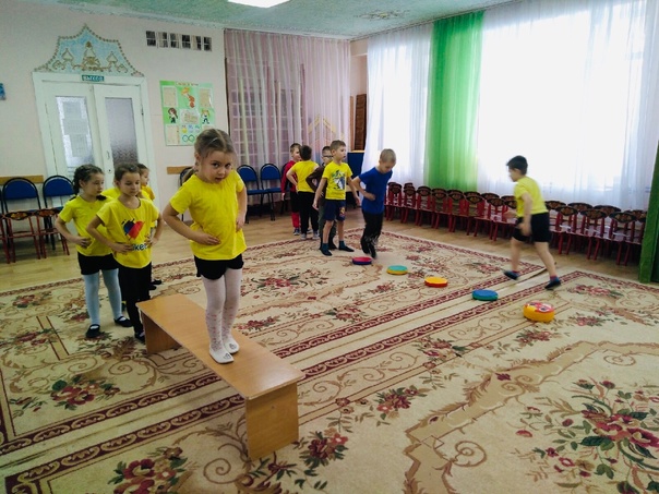 ГКН «Солнышко», ребята ходили по гимнастической скамейке, прыгали на двух ногах через бруски ( воспитатель -Бадина Елена Александровна, инструктор по физической культуре-Никифорова Анастасия Валерьевна).