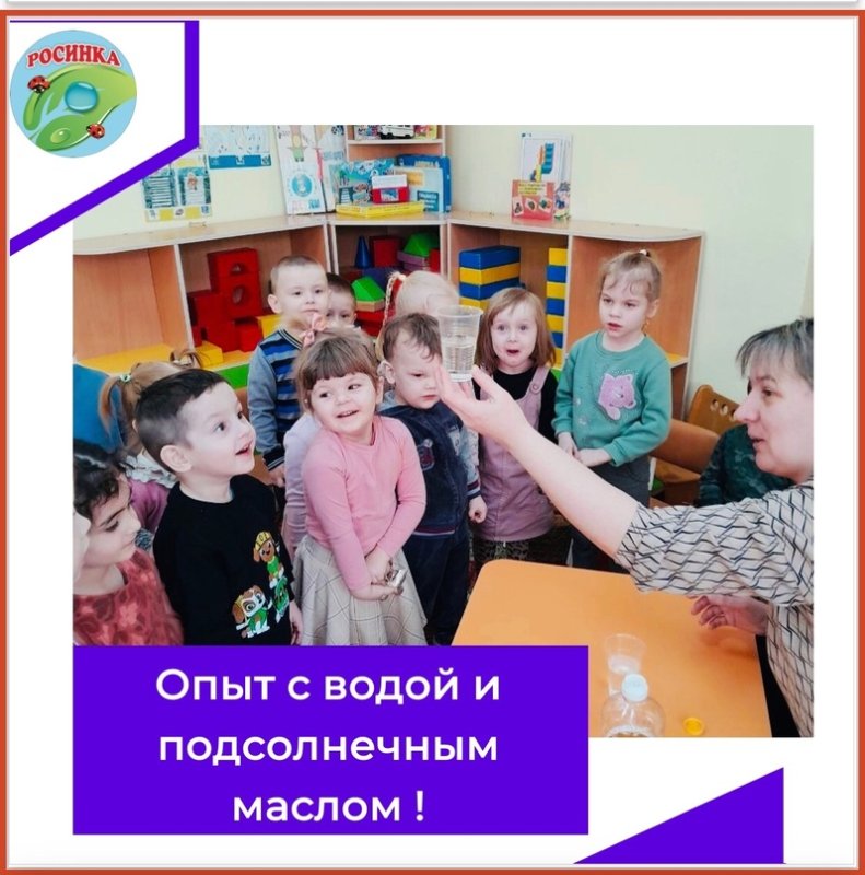 Интересный и познавательный опыт с водой и подсолнечным маслом прошел в группе «Ягодка» ( воспитатель Грачева Анна Владимировна)