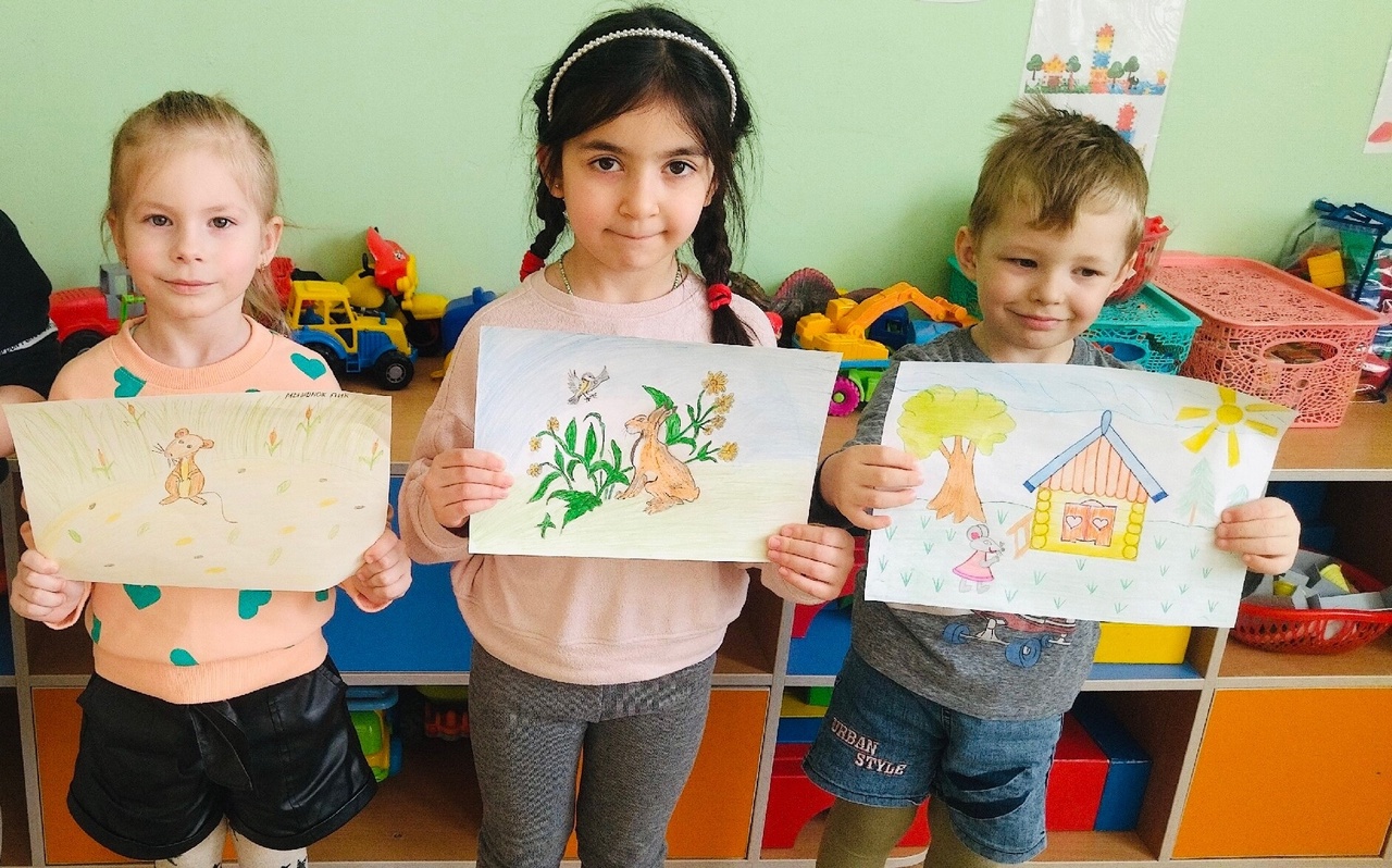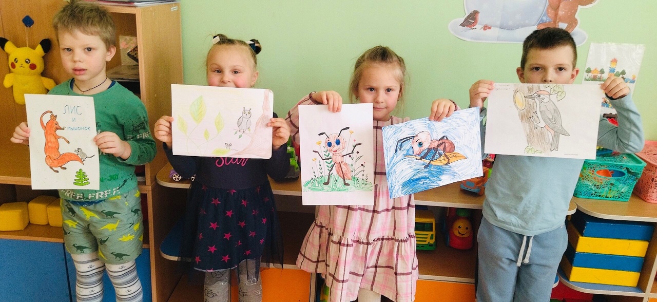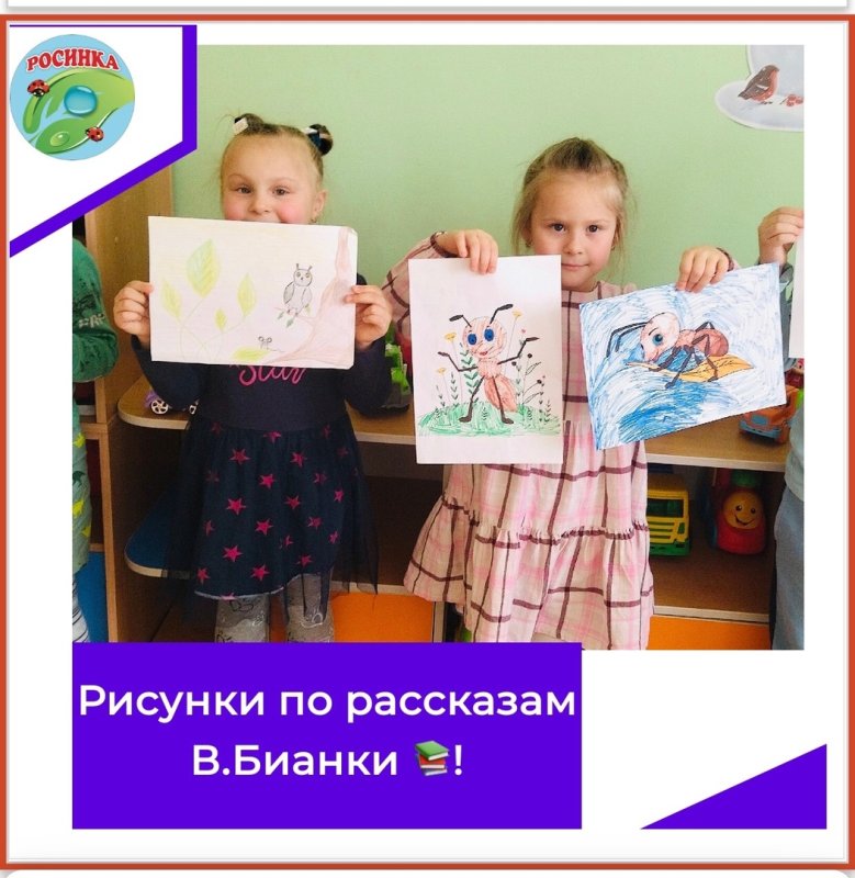 Ребята совместно с родителями погрузились в волшебный мир детских книг В. Бианки. Представляем вашему вниманию прекрасные рисунки по произведениям всеми любимого писателя: «Голубые лягушата», «Мышонок Пик», «Лесные домишки», «Как муравьишка домой спешил», «Лис и мышонок», «Сова», «Теремок».
