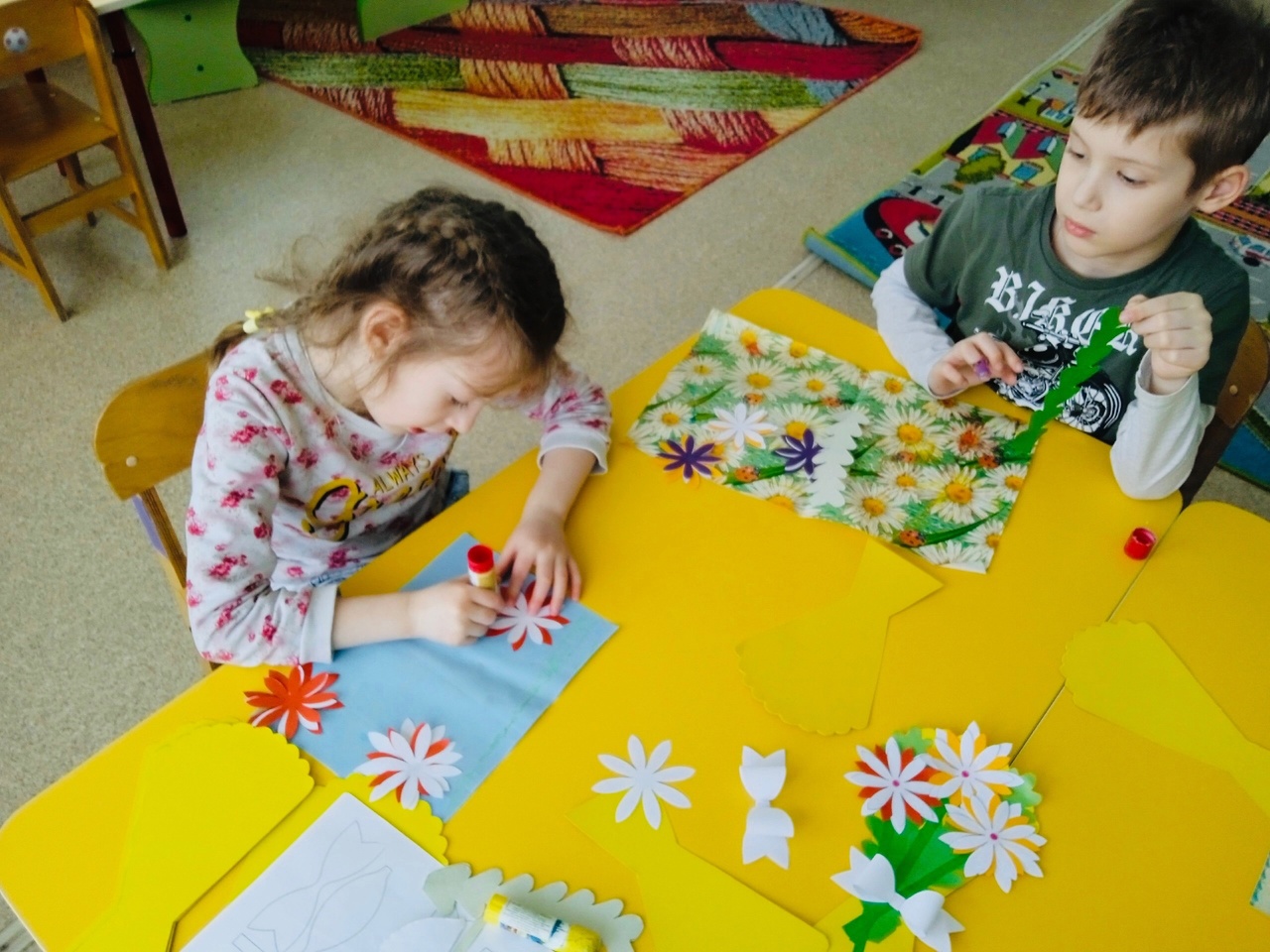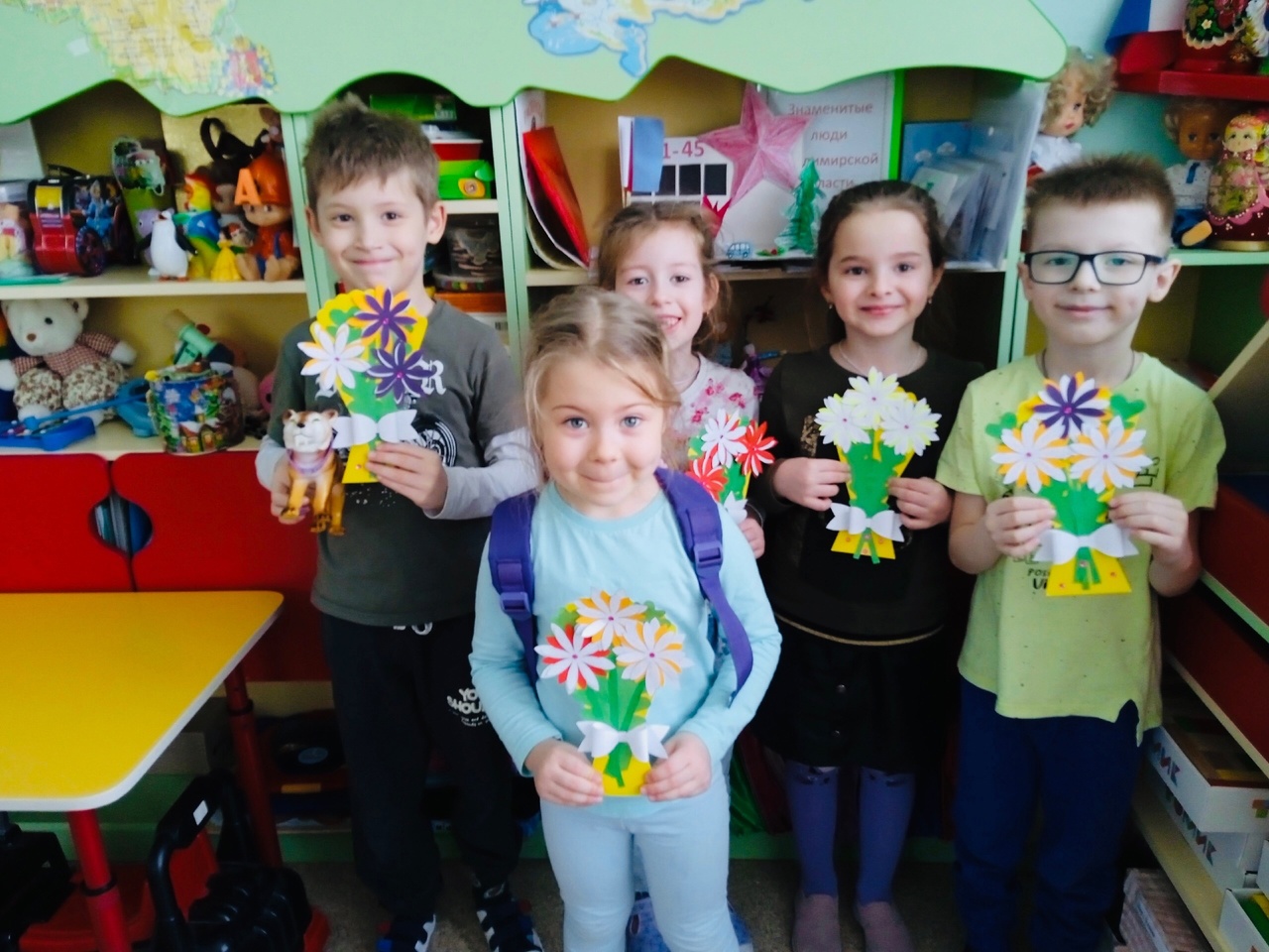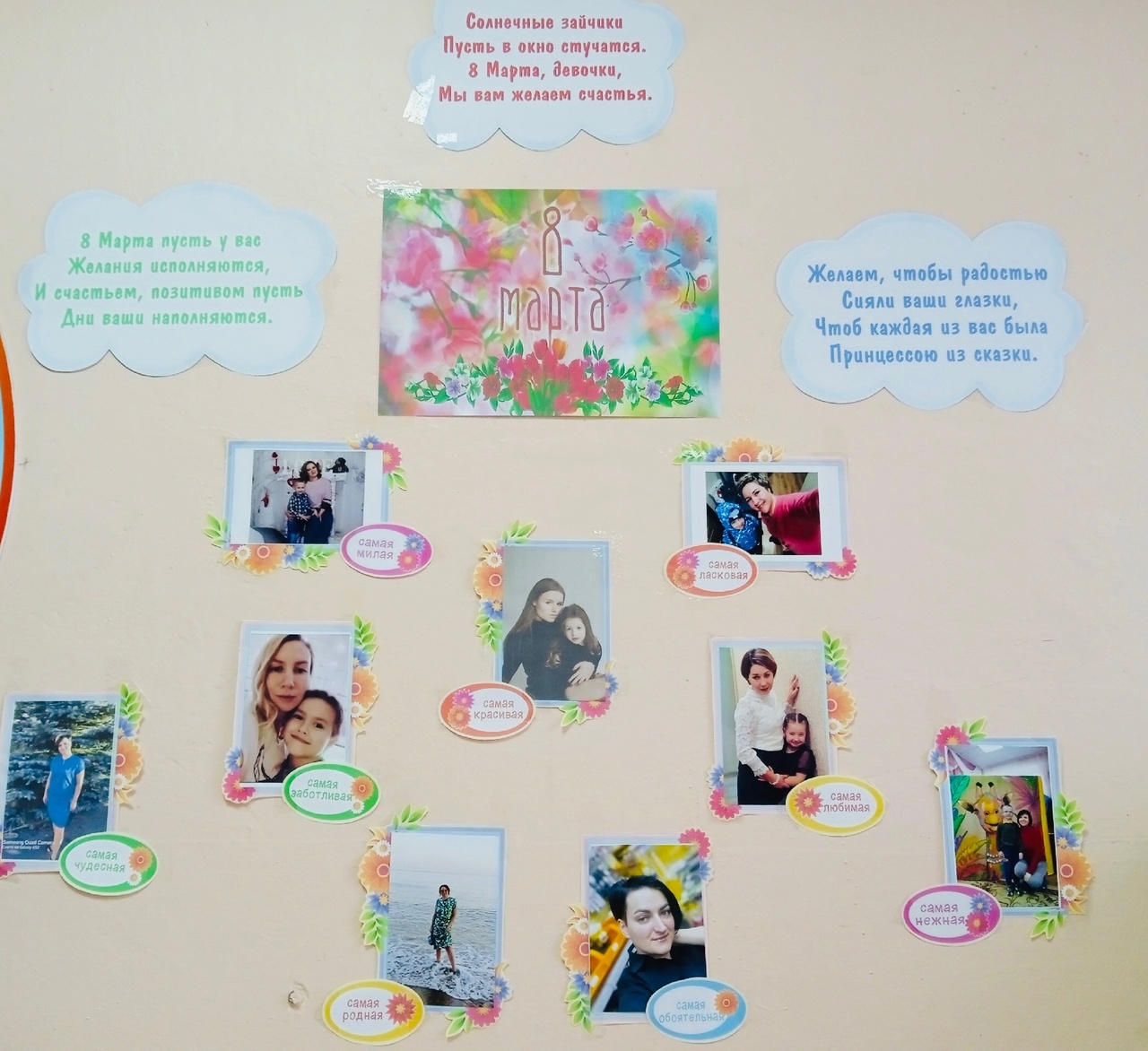 Ребята из группы "Солнышко" оформили в приёмной уголок с поздравлением для мамочек и сделали для них подарки.