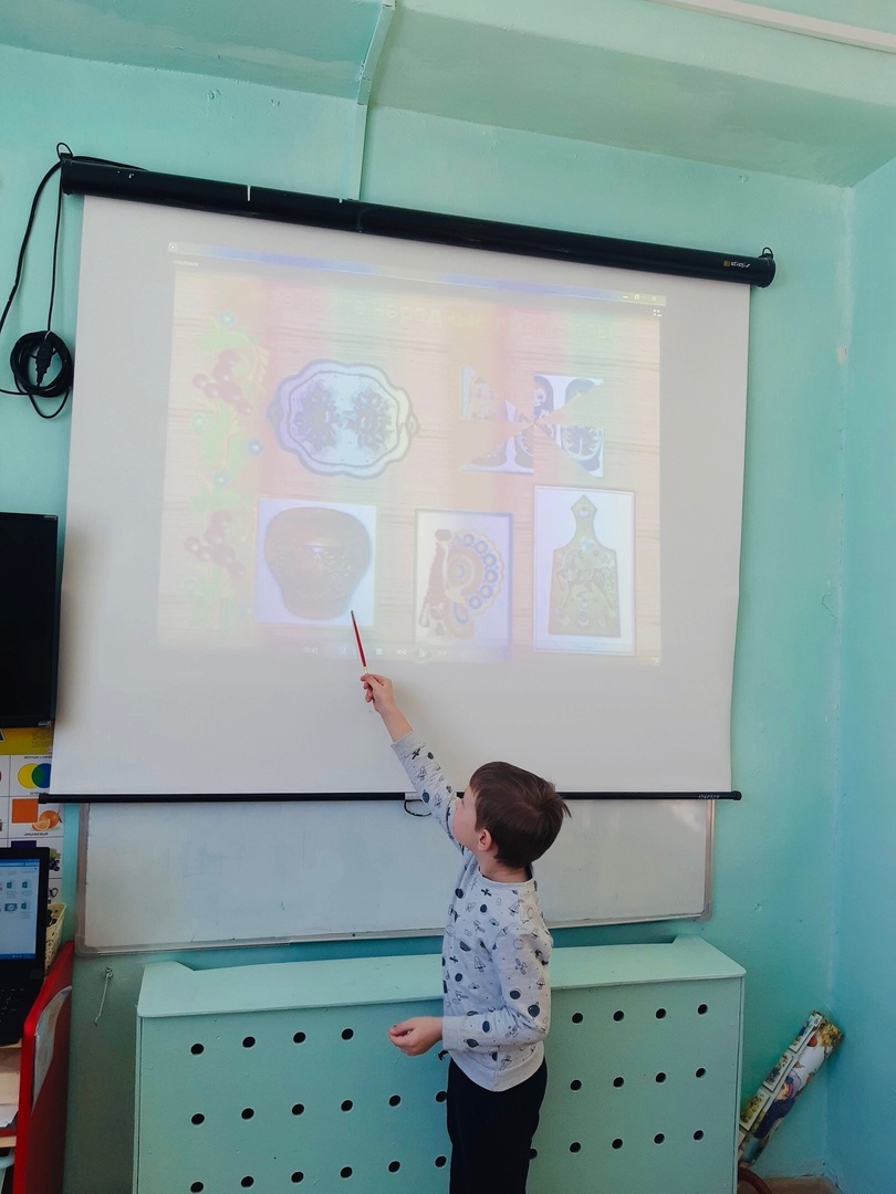 Ребята ГКН " Солнышко" посмотрели обучающий мультфильм про путешествие плошки в Хохлому, провели дидактическую игру по росписям и промыслам, были художниками, каждый «оживил» свою разделочную доску и сделал её неповторимой (воспитатели-Бадина Елена Александровна и Кузнецова Елена Васильевна)