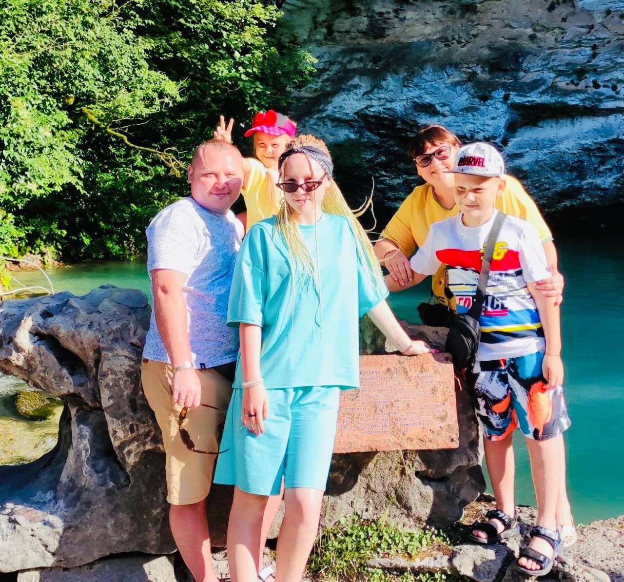 У нас очень дружная, весёлая семья:папа, мама, две дочки и сынок. Мы очень любим животных, у нас живёт собака Боня и аквариумные рыбки.