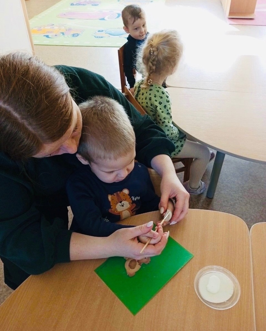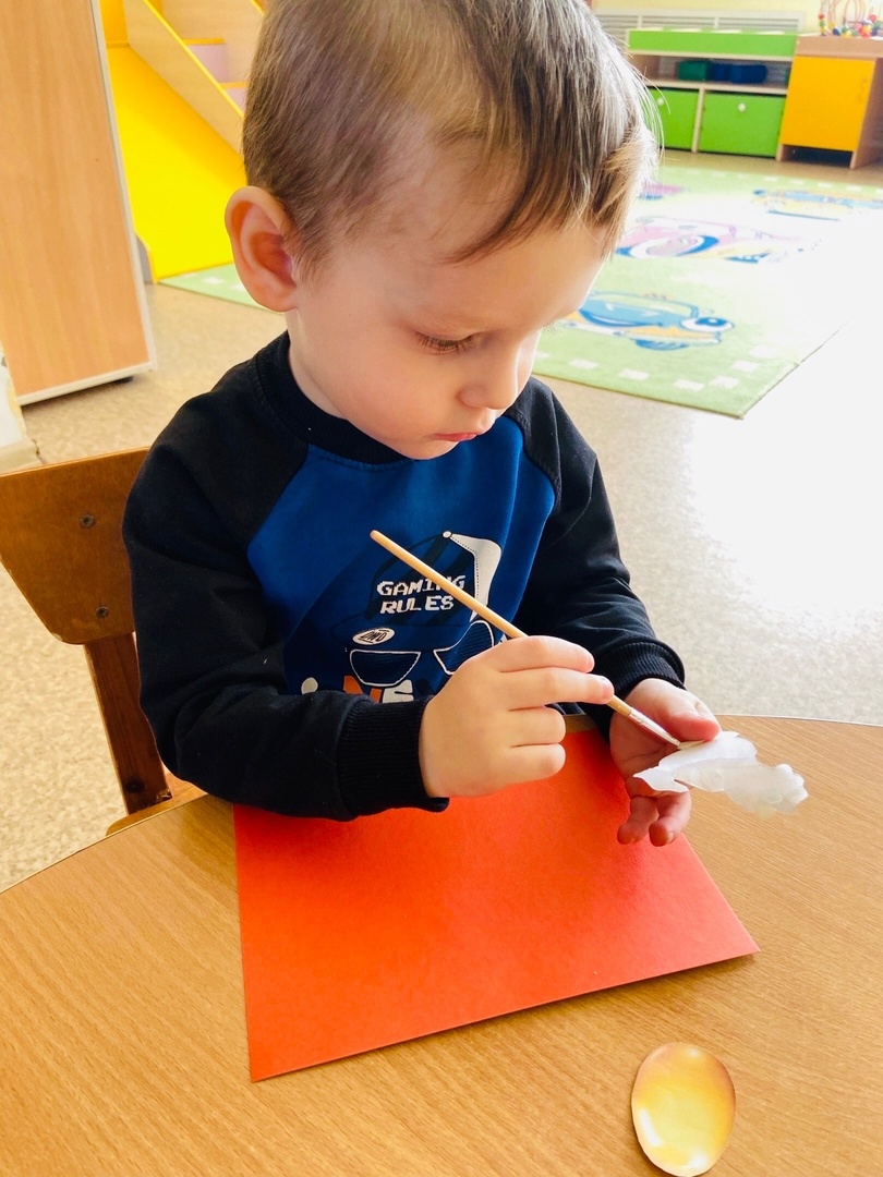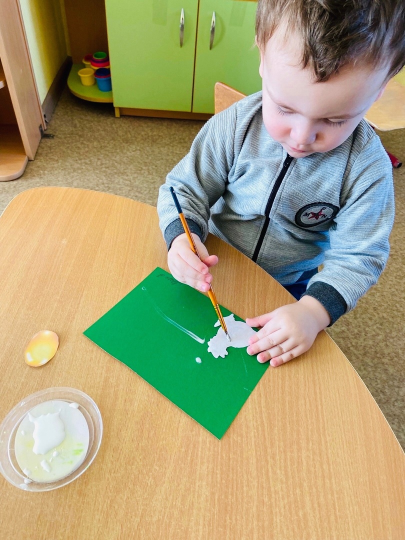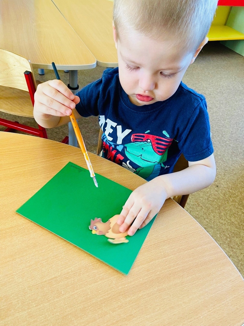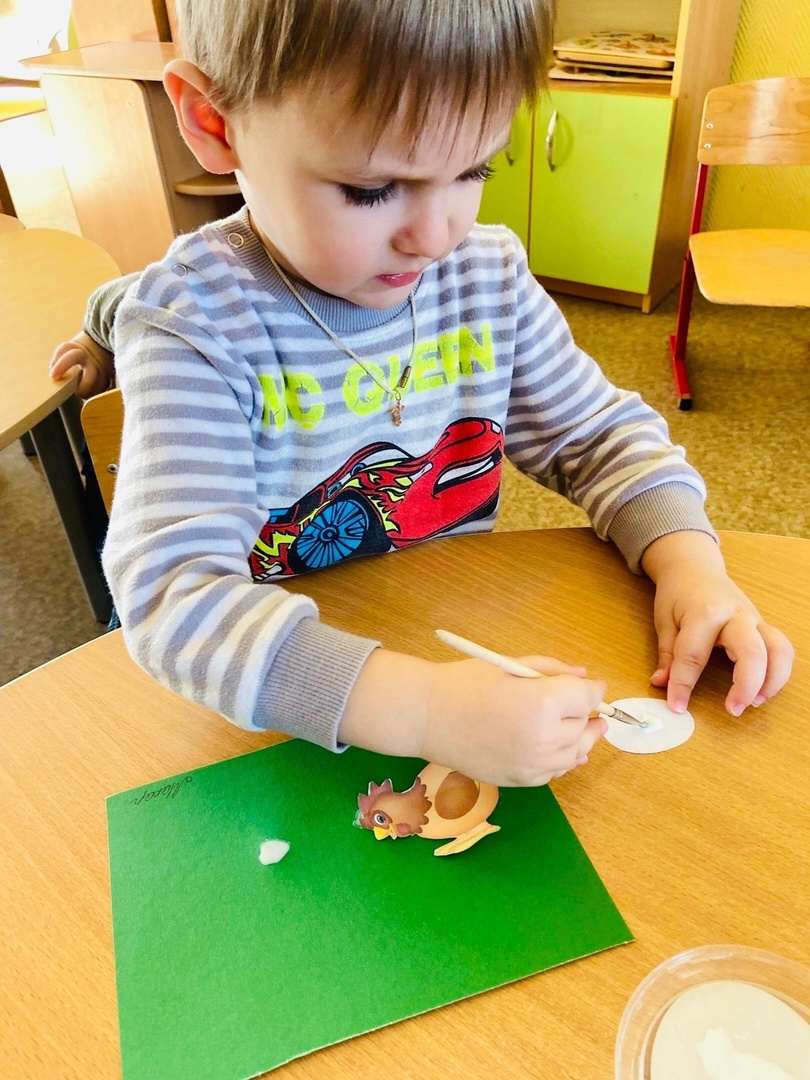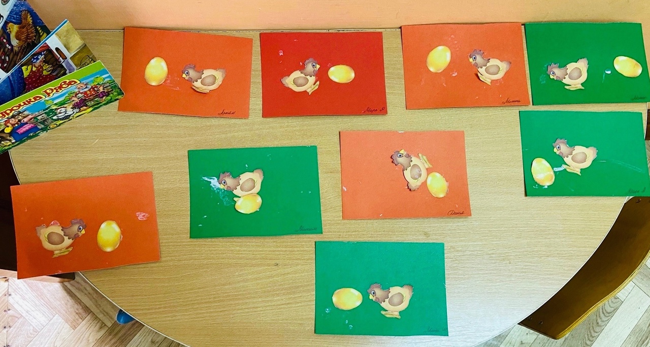 После занимательной музыки смастерили аппликацию по сказке «Курочка Ряба» (воспитатель -Вяткина Татьяна Борисовна)