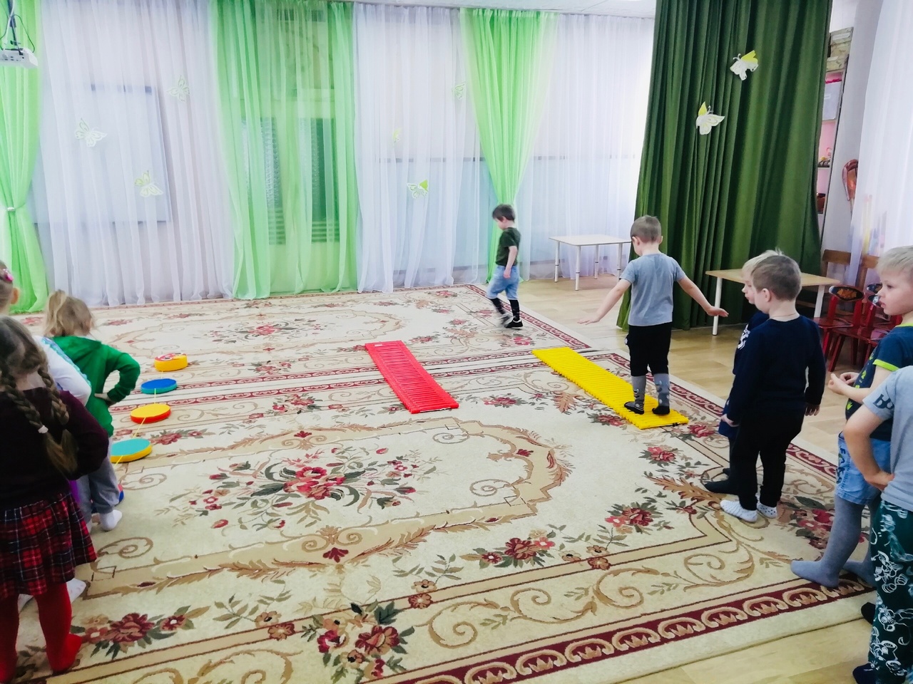 В условиях детского сада мы используем различные виды корректирующей ходьбы на носках, наружных сторонах стоп, на пятках, ходьба по массажным дорожкам и многое другое ( инструктор по физической культуре-Никифорова Анастасия Валерьевна)