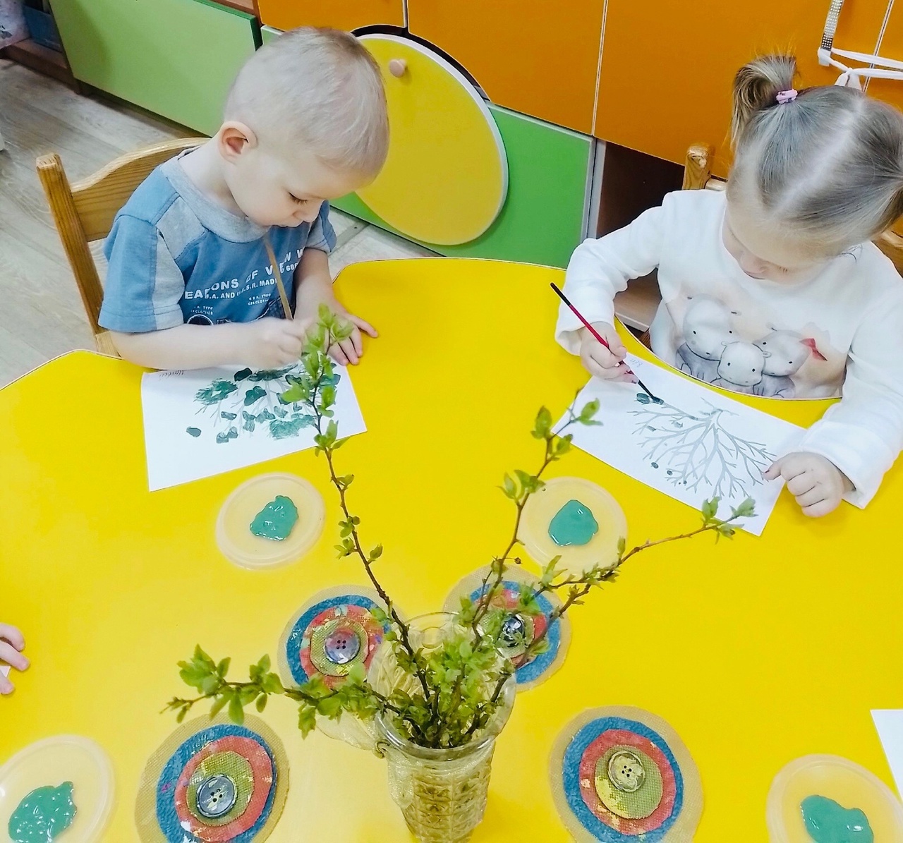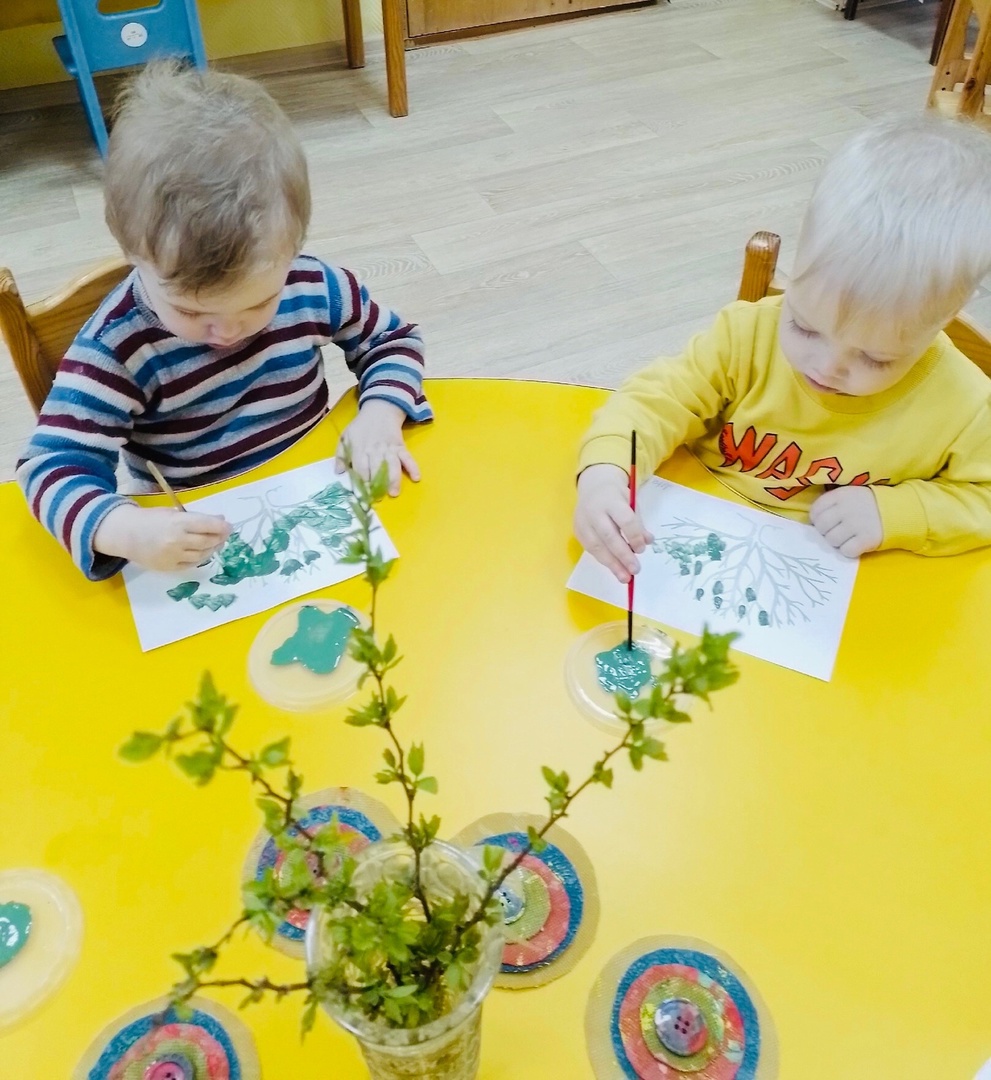 Рисование «Распустились листочки на веточке» для детей 1 младшей группы «Солнышко», воспитатель - Титова Алла Геннадьевна.